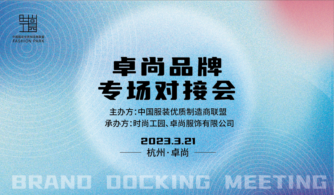 为了推动卓尚服饰供应链优化升级,加强优质制造企业与卓尚旗下品牌的深度交流和商贸对接,3月21日,中国服装优质制造商联盟将举办“卓尚品牌专场对接会”,届时组织优质成衣企业及优质面辅料供应商走进杭州,与卓尚旗下品牌展开深度交流与精准对接,欢迎成衣优质制造企业及优质面辅料供应商报名参加!