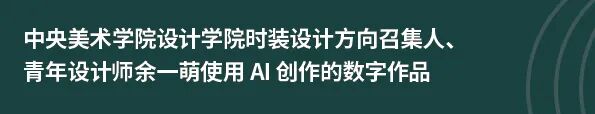 中央美术学院设计学院时装设计方向召集人、青年设计师余一萌早在 2021 年就曾带领中国美院的学生参加了 DeeCamp 人工智能训练营,尝试过“基于AI对话生成的服装设计”,并且组队完成了一个创新项目 “AICL”(Artificial Intelligence Clothing Lab),最终概念应用场景落成一款 APP,可以通过 AI 对话的生成纹样的方式为用户提供参与服装设计的可能性,并将 AI 生成和人为挑选出的纹样应用到预设的资源库中,再交付工厂制作,由此展开在服装设计中对“AI + 人”工作模式的探索。而现在,她已经将 AI 技术作为设计工具引入她所教授的课程。