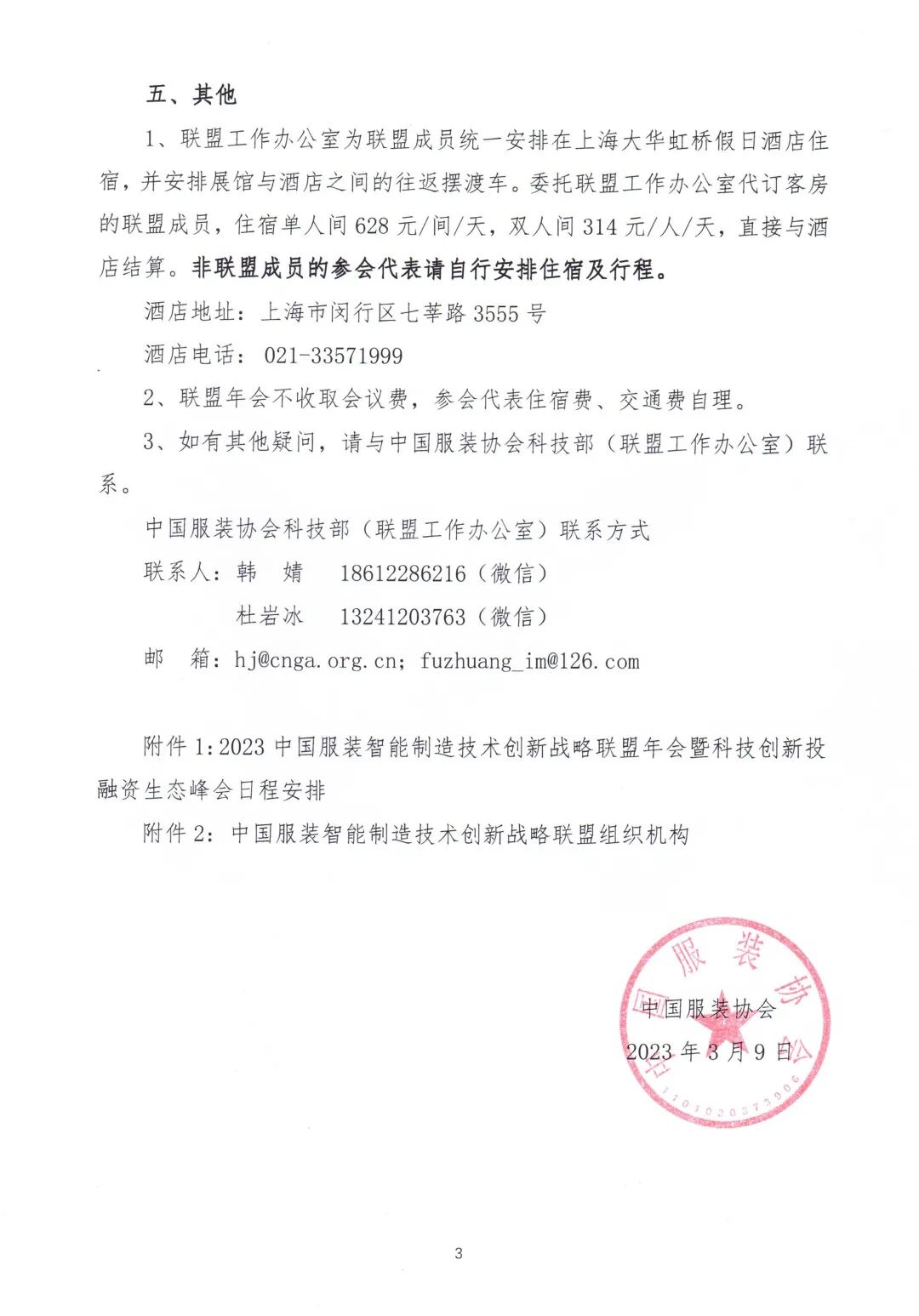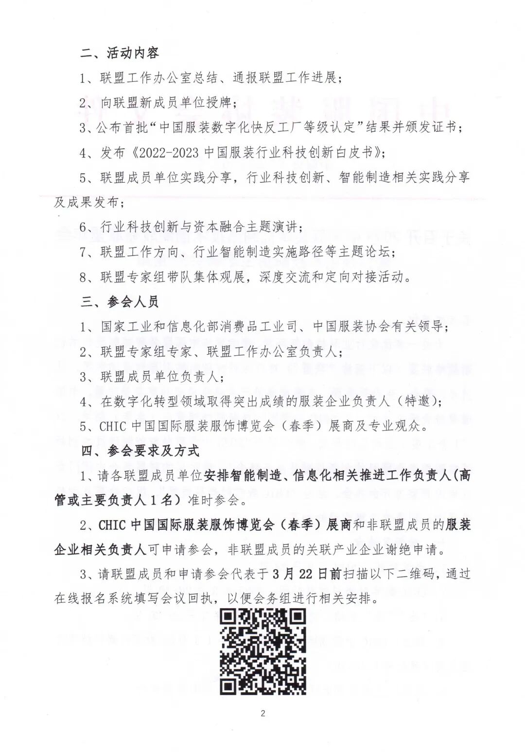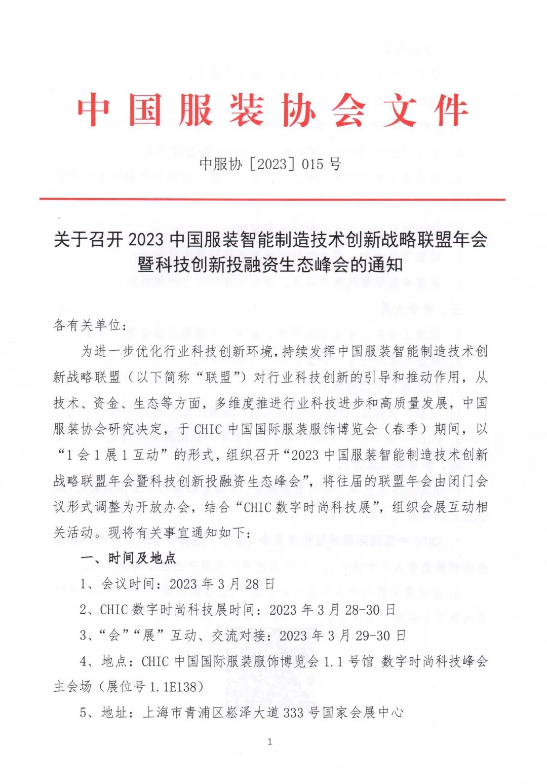关于召开2023中国服装智能制造技术创新战略联盟年会暨科技创新投融资生态峰会的通知