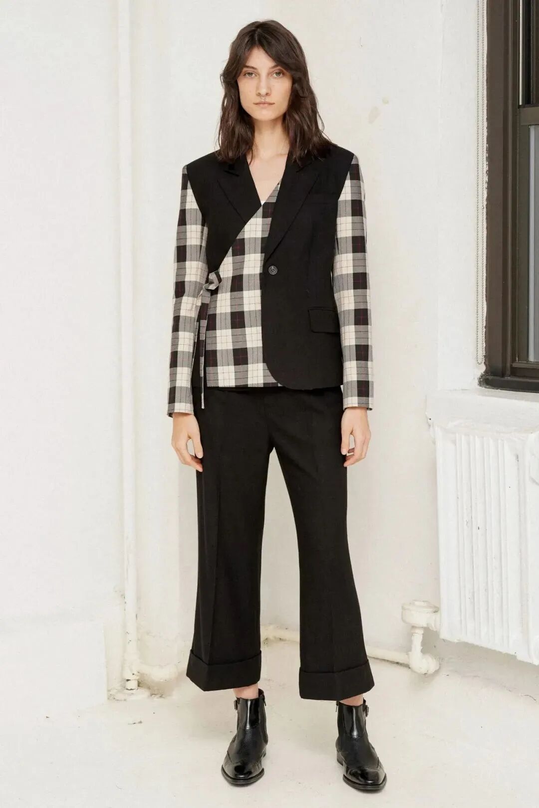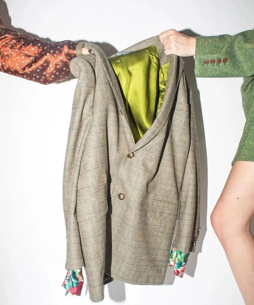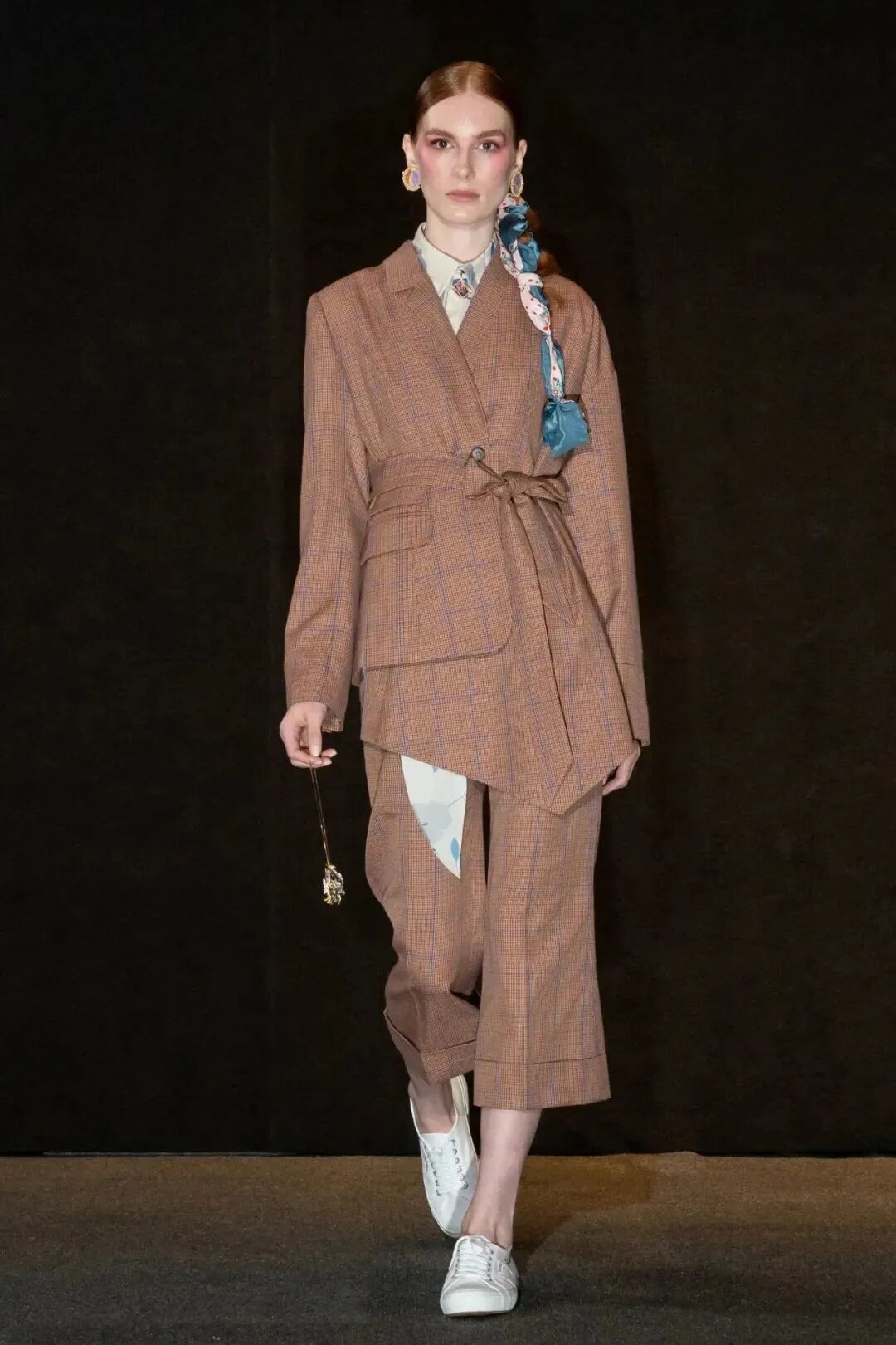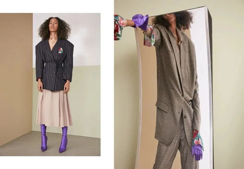 高雪作品中拥有丰富有趣的布料扭转,以及多种奢华西装面料的混搭拼接。