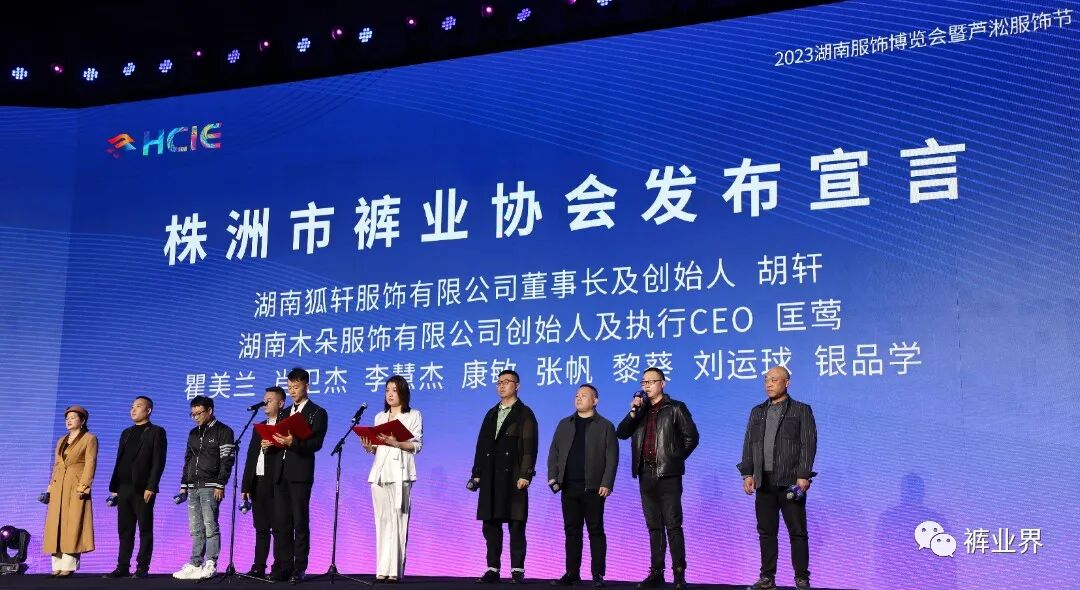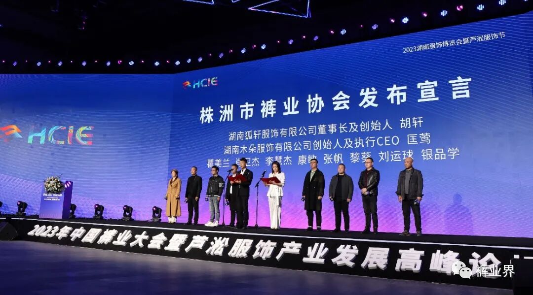 最后,由株洲市裤业协会品牌代表共同发布宣言,并成立“湖南服饰湘商联盟”。