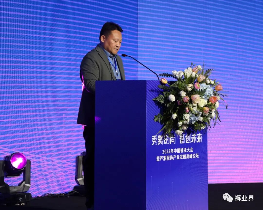 中国服装协会裤业专业委员会常务副主任委员、郑州梦舒雅服饰董事长陈勇斌进行《2022中国裤业产业发展报告》主题演讲,从裤业概况、产业变迁、实体店铺的未来及发展趋势等方面做了详细分析,为我们呈现了裤装行业的现状和前景。