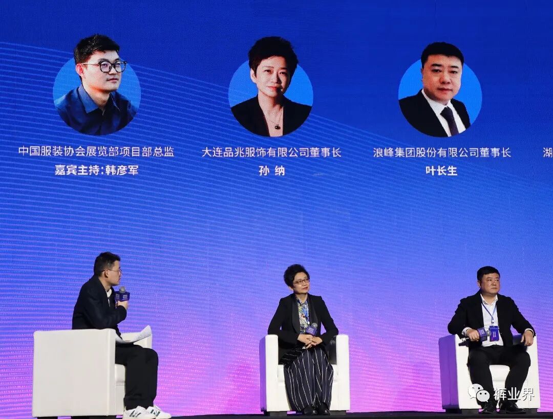 圆桌论坛由中国服装协会展览部项目部总监、中国服装协会裤业专业委员会秘书长韩彦军主持,邀请嘉宾:大连品兆服饰有限公司董事长孙纳、浪峰集团股份有限公司董事长叶长生、湖南尊睿服装有限公司董事长刘立中、湖南新素白服饰有限公司董事长马乖、株洲在线网络科技有限公司董事长刘庆晖。