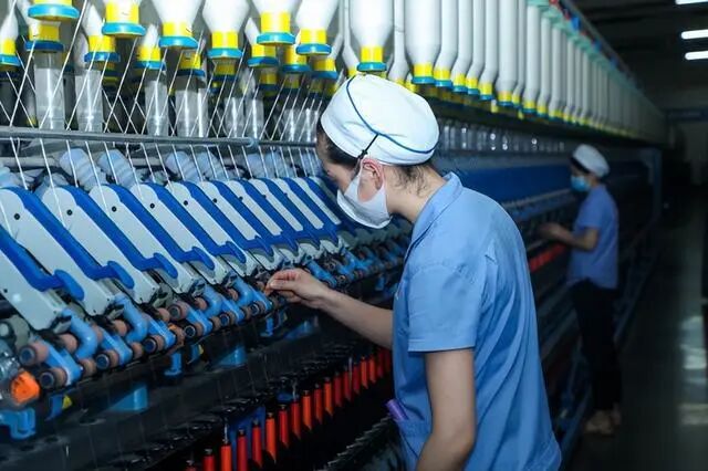 机车轰鸣的车间,高温高湿的纺纱环境,汗珠从额头一滴滴滑下,在纺织工人们灵动的指尖上,一排排纺纱机有条不紊地运转着,由棉花到线再到布,织就着属于纺织人的锦绣华章。