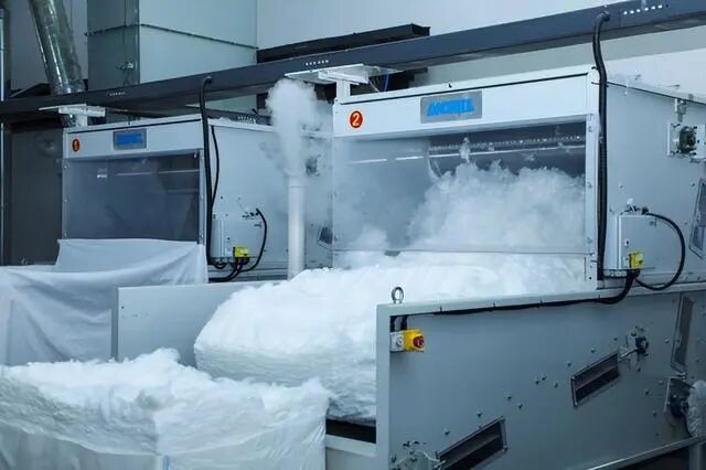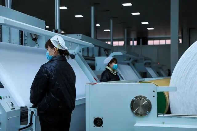 在水刺复合材料生产线项目车间,偌大的车间里只有寥寥数人,与传统纺织业的劳动密集型相比,整个生产车间只需几人操作,就可实现纺织产品全流程生产。