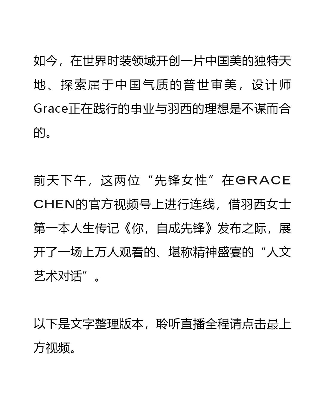 企业动态 | 靳羽西 × Grace Chen:对话现代中国女性的美