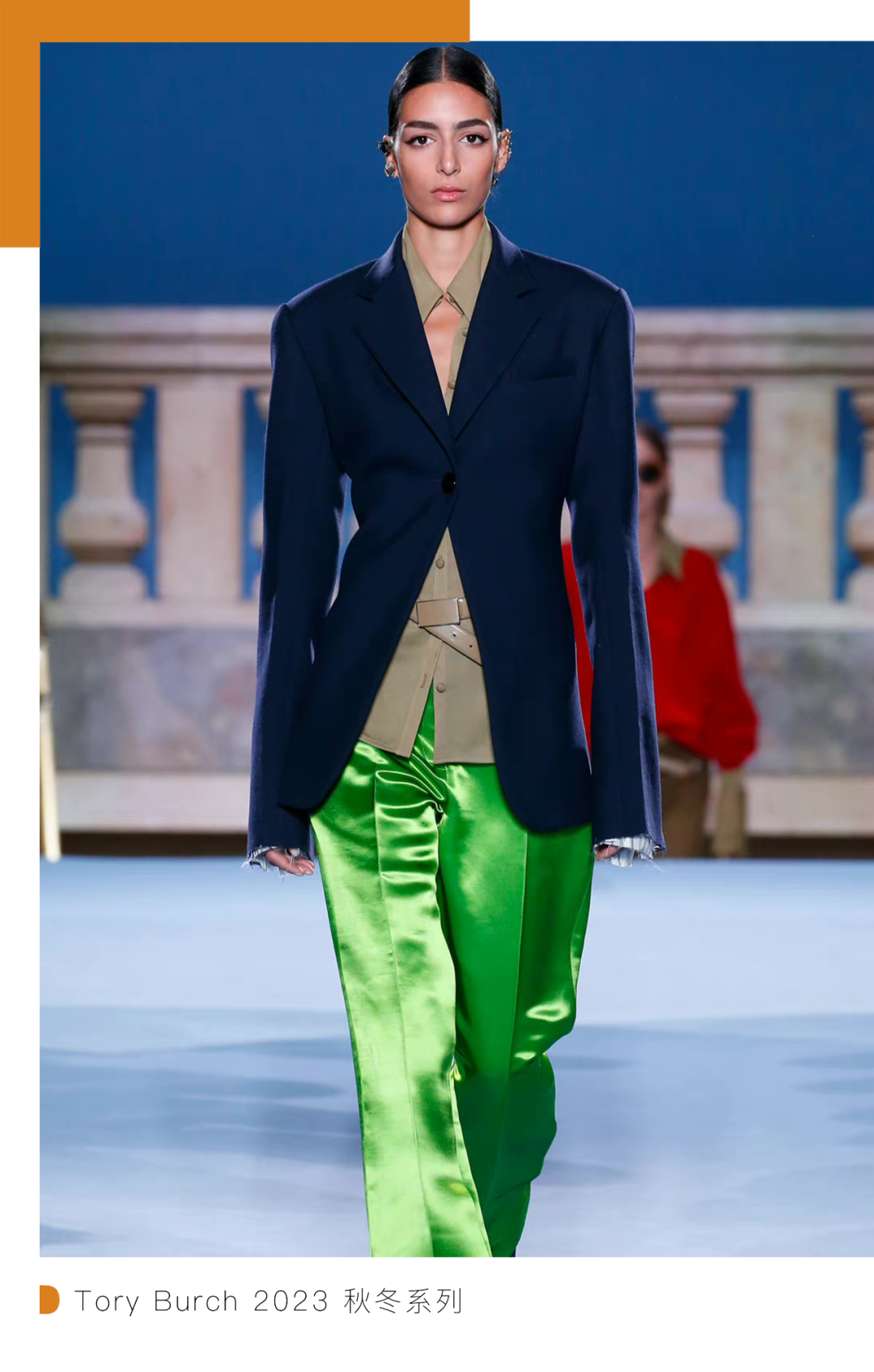 没有繁复的印花、通过不同材质的拼接、廓形和多元的款式,以及大体积采用高饱和色调,为都市女性衣橱增添更多选择。干练的套装和流畅剪裁的礼服裙,满足不同场合的着装需求。“不完美即完美,弱点也可以成为力量。” 本季 Tory Burch 旨在传达坚守自我的无畏与自信,鼓励女性打破成规的勇气。