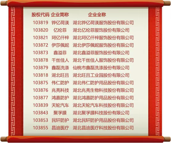 2月9日,“仙桃纺织服装板块”启动,来自湖北省仙桃市的15家企业在武汉股权托管交易中心集体鸣钟、挂牌开市。随着“仙桃纺织服装板块”在湖北“四板”市场的正式启动,标志着仙桃多层次资本市场建设取得阶段性成果,仙桃特色产业板块在资本市场不断壮大。当天集体鸣钟、挂牌开市的15家仙桃企业,分别来自服装、纺织、农产品加工、环保科技、汽车等多个行业,其中包括7家服装企业和4家无纺布企业。记者梳理发现,7家服装企业全部来自毛嘴镇服装产业园,且都十分“年轻”。