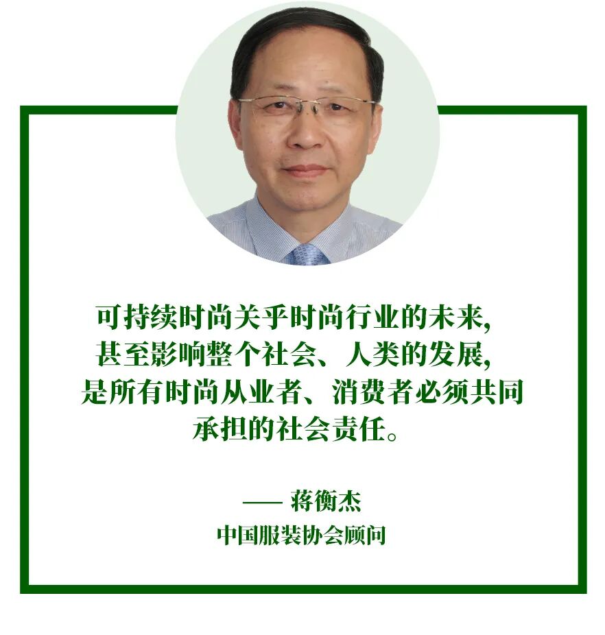 《纺织行业“十四五”绿色发展指导意见》明确指出,纺织工业是责任导向的绿色产业,是实现整个行业高质量发展的重要标志和基础底线。而在高度关注国际可持续时尚产业动向、敏锐抓住全球时尚产业变革机遇的同时,只有洞察政策方向、了解权威专家对于可持续时尚发展的态度和建议,才能更好地在市场运营中践行。