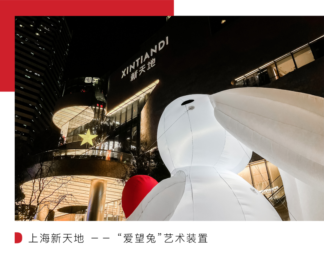 以“创艺、文化、艺术、社交”等要素驱动“精神满足”,作为当下商业地产运营商对于未来美好商业探索的新课题,新春期间的上海新天地,则更加聚焦于“Created in China”中国创艺理念的出发点,也更符合其孵化和支持中国原创的经营初衷。正如 Tutomokey 大型艺术装置、VVNK Market“屁头兔”新年艺术市集、星星兔子和“爱望兔”可持续艺术装置、兔 gether一起碰头、万代南梦宫潮玩派对 2023,等等主题文化体验活动。其中 Tutomokey 大型艺术装置和 VVNK Market“屁头兔”新年艺术市集也并非仅仅在新春假期,而是分别持续到 4 月 11 日、3 月 31 日。