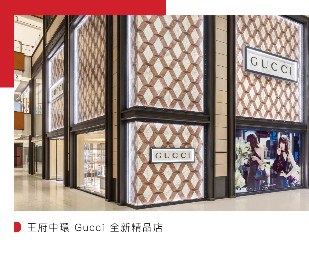 而春节前揭幕的 Gucci 王府中環全新精品店,双层全系列时尚精品零售空间由深入古驰的当代美学创作延展开来,其中承接一层与二层的楼梯以中国传统的云锦面料作为楼梯间的墙壁装饰。
