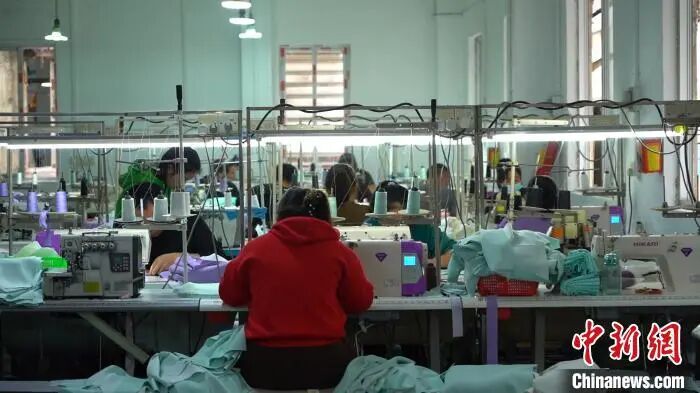 图为康乐村一制衣厂工人正在赶货 (何俊杰 摄)