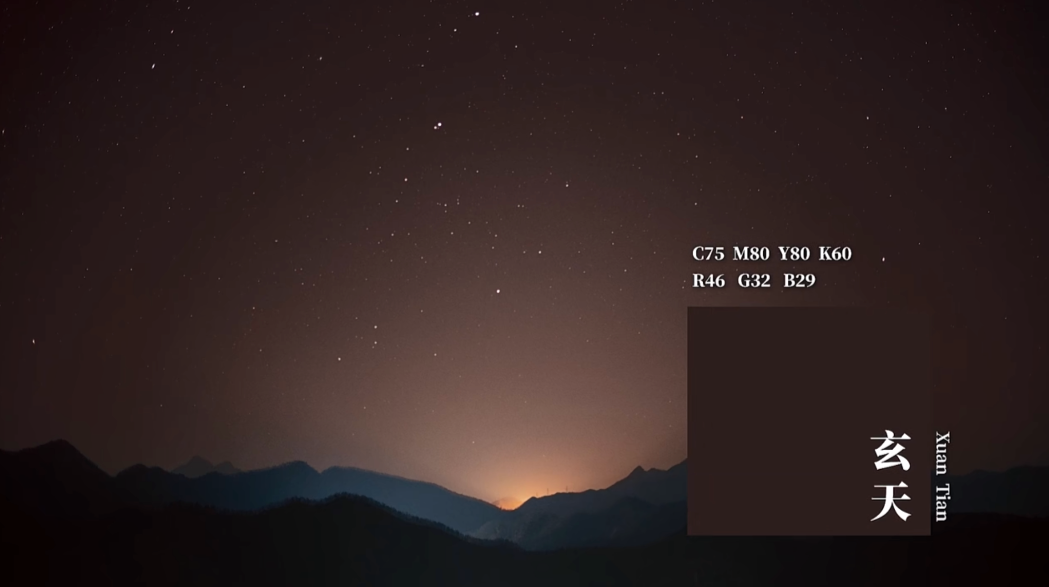 这个颜色是在一天的结束,太阳还没有沉下去时,天空折射出来的红黄交织的余光,可能再晚一分钟,天就暗下来了。玄和纁组成了中国古代非常隆重的颜色。大多数的朝代,皇帝祭祀时穿的衣服都是上玄下纁,以此来表达中国人对天地的敬畏之心。