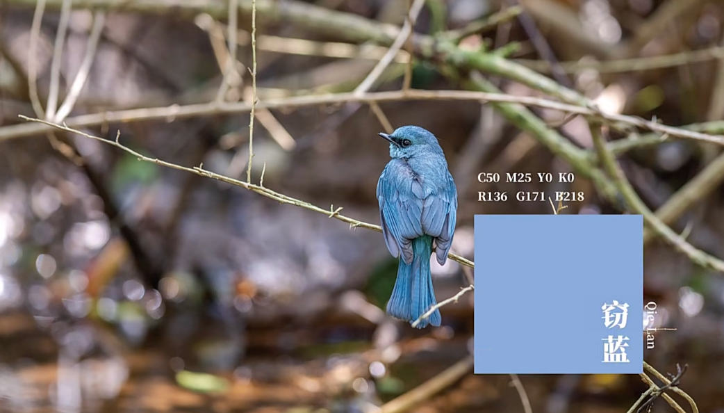 古人在表达低饱和度时的用词,也极有意思。就说这“窃蓝”,好似在说是偷来的一点点蓝,仿佛颜色也有了自己的身世。还有“弗肯红(注:谐音‘不肯红’)”“盗骊(注:浅黑色,凡言窃、盗,皆借色、浅色)”“无心绿”,色彩一整个活了起来,有了脾气秉性。
