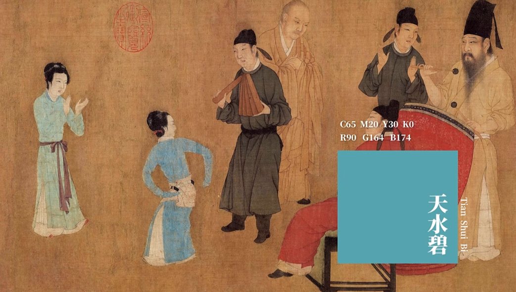 此绝色,来自南朝李后主的宫廷,还引出了一个颇有美感的意外,据说有一回宫女在给衣裳染色,结果晚上忘记收衣,被露水打湿了,第二天却惊喜发现被露水染出来的衣服,变幻出了在蓝绿之间的颜色,“自是宫中竞收露水,染碧以衣之”,“天水碧”由是得名。