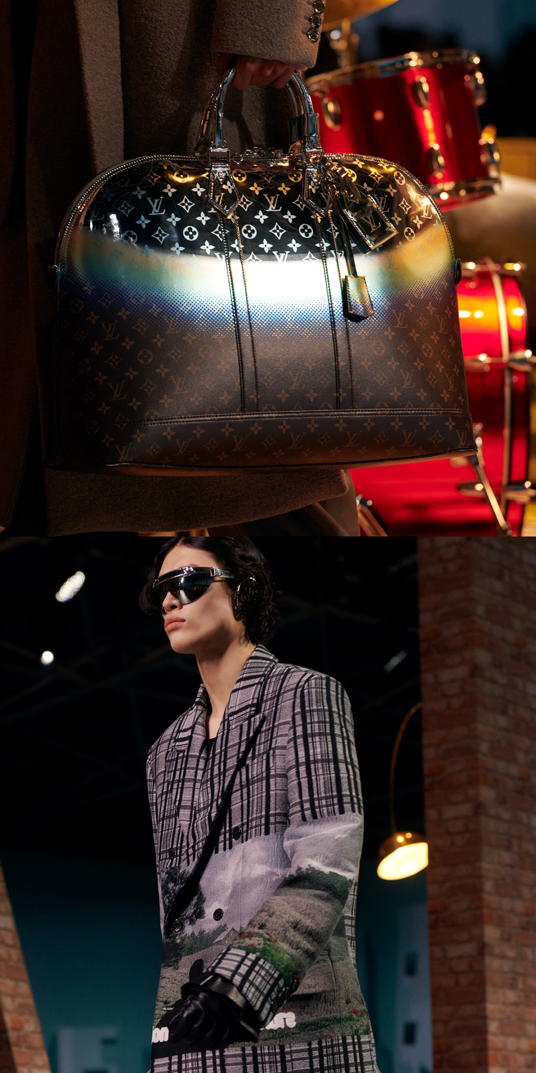 本系列的一大亮点是融入了Colm Dillane 自己的品牌KidSuper的手绘艺术。模特们身着宽松西装、风衣和蓬松夹克走下舞台,从工装裤到Keepall旅行袋和翻毛皮夹克,都印着醒目的人脸印花,并与Louis Vuitton的标志性图案以及淡紫色、霓虹绿、橙色等狂野的色彩相融合。