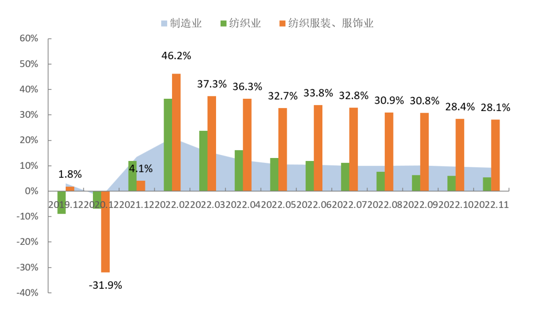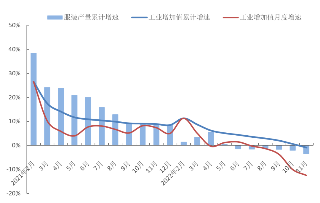 图1 2022年1-11月服装行业生产增速情况