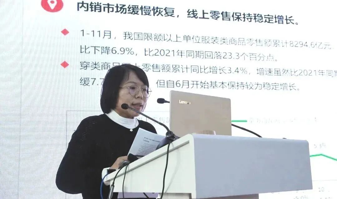 首先产业部高级项目主任刘静介绍了2022年中国服装业行业经济运行的总体情况: