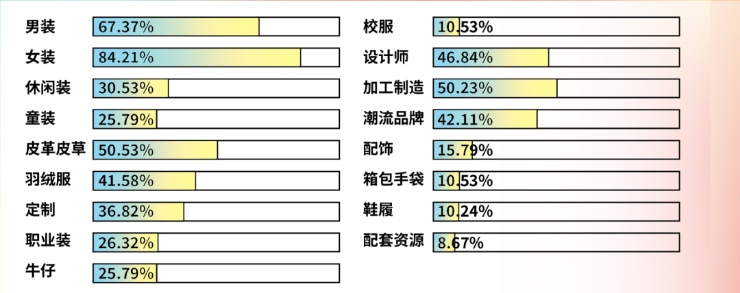 从CHIC以往的观众数据中,67.37%的专业观众对男装感兴趣,希望通过展会了解更多的男装趋势,看到更多的男装新品。此外,除了关注男装外,专业观众也对领带、围巾等男士配饰有采购需求。
