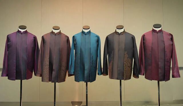 面料方面采用了有“锦绣之冠”美誉的宋锦,色泽华丽,图案精致,华而不炫,贵而不显,而且低调、内敛;图案方面采用“海水江崖纹”的经典设计,赋予了APEC21个经济体山水相依,守望相护的美好寓意。
