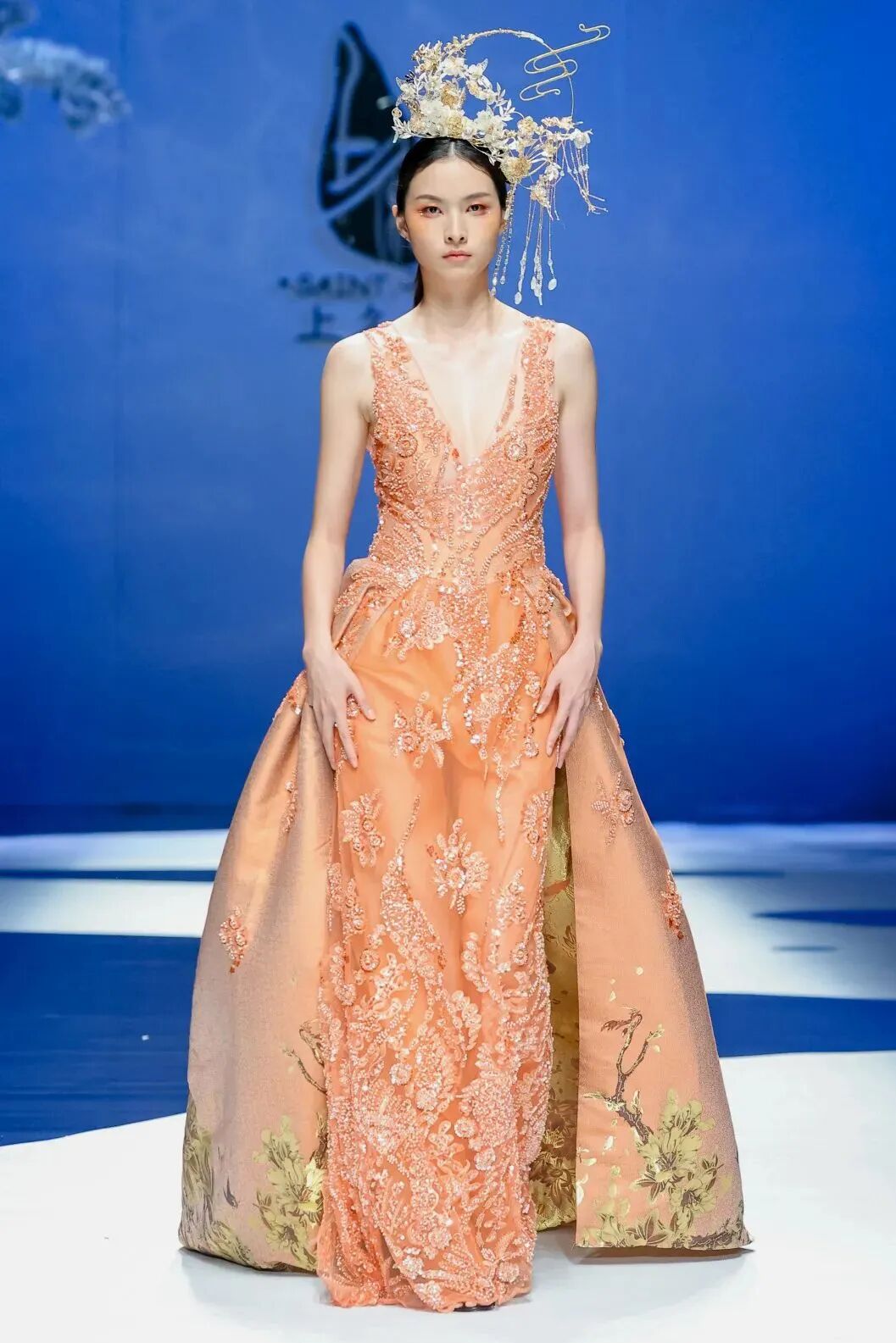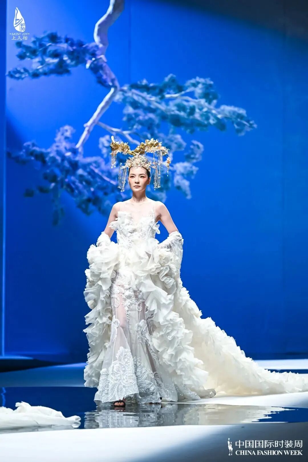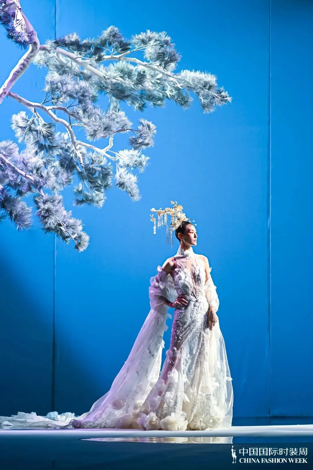 设计师以写意的艺术设计手法将华夏山水之仙,鸟语花香之灵,日月光辉之昭呈现在服饰之上。