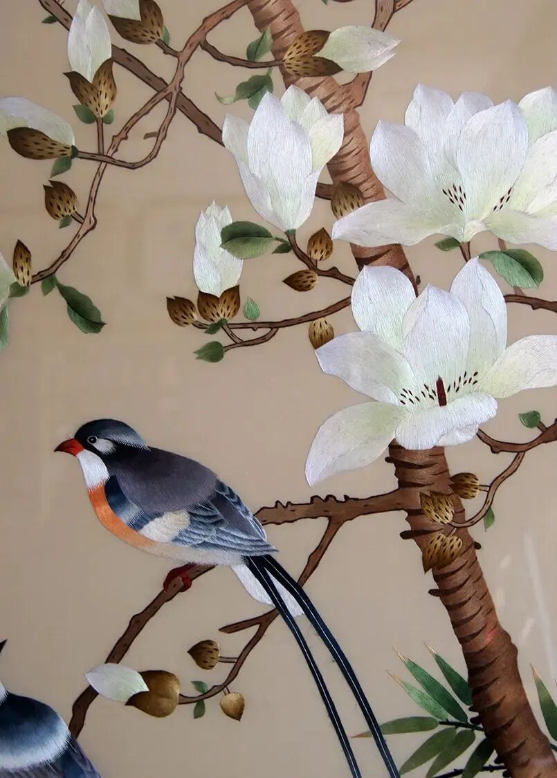 苏绣将“画”与“绣”相结合,以针代笔、以线为愚,以摹绣古代名画为主,着意追求笔情墨趣,富有浓厚的中国画典雅风格。