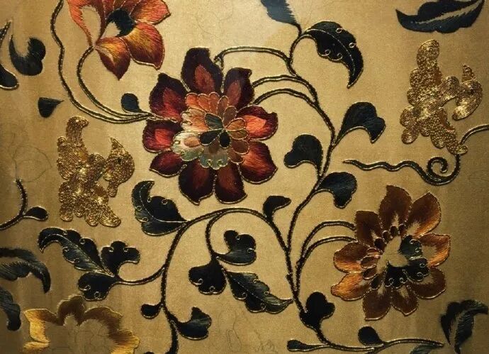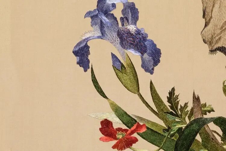 “平”指绣面平展;“齐”指图案边缘齐整;“细”指用针细巧,绣线精细;“密”指线条排列紧凑,不露针迹;“和”指设色适宜;“光”指光彩夺目,色泽鲜明;“顺”指丝理圆转自如;“匀”指线条精细均匀,疏密一致。