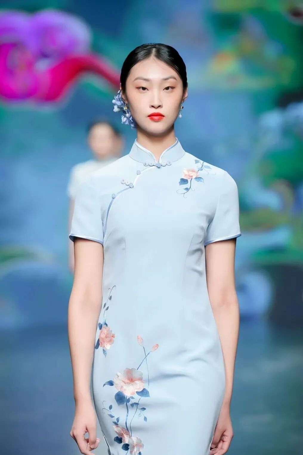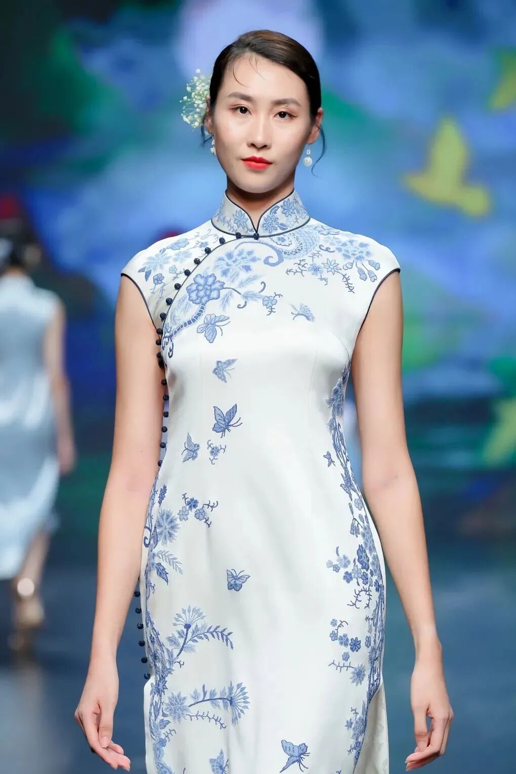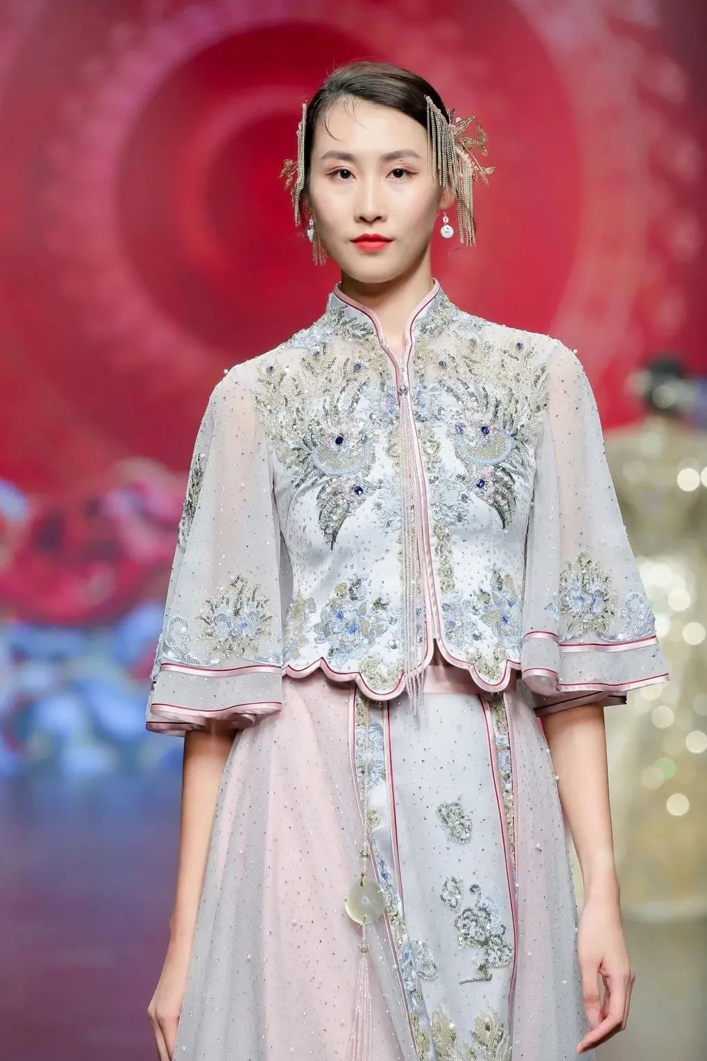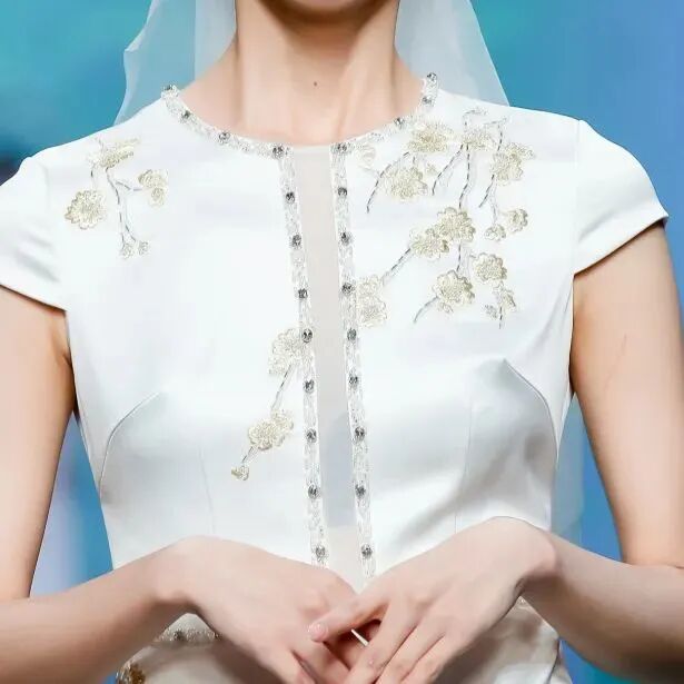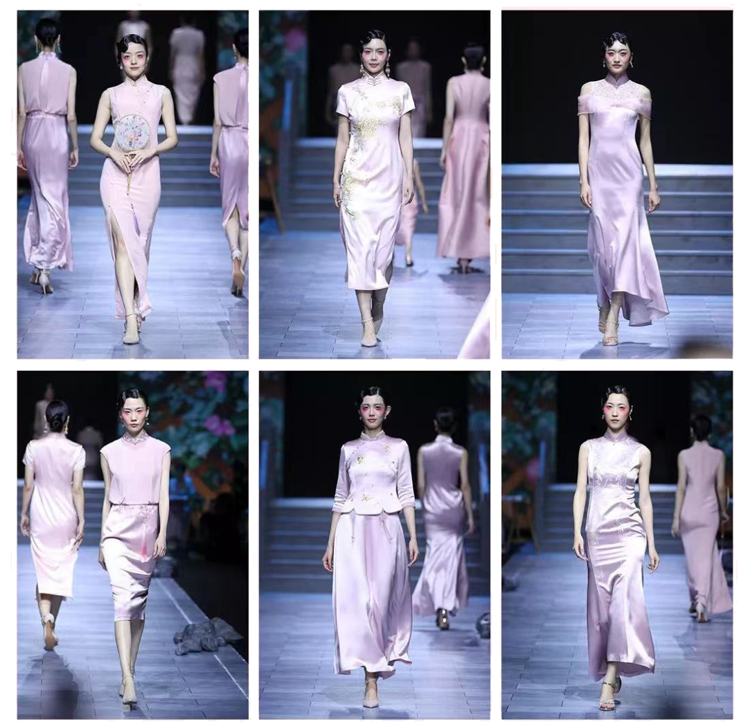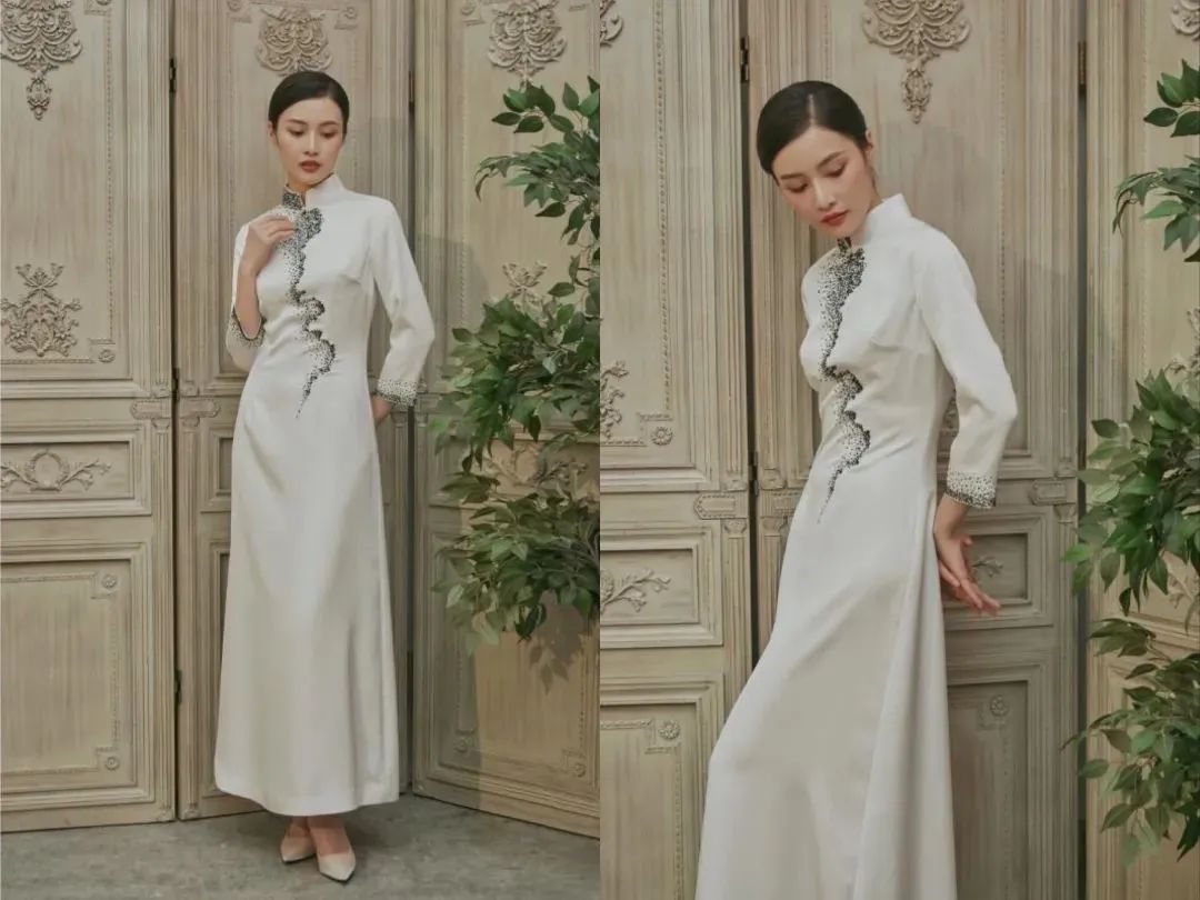东方传统的龙凤、花草图案,配上丝缎、轻纱、蕾丝、绣花,在传统旗袍款式上加以改良创新,使礼服精致又不失现代美感。中华传统非遗手工技艺在新一代设计师的手中传承与创新。