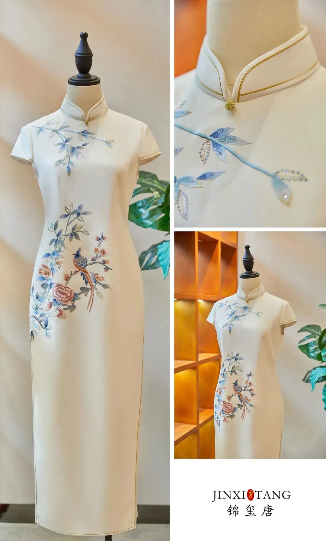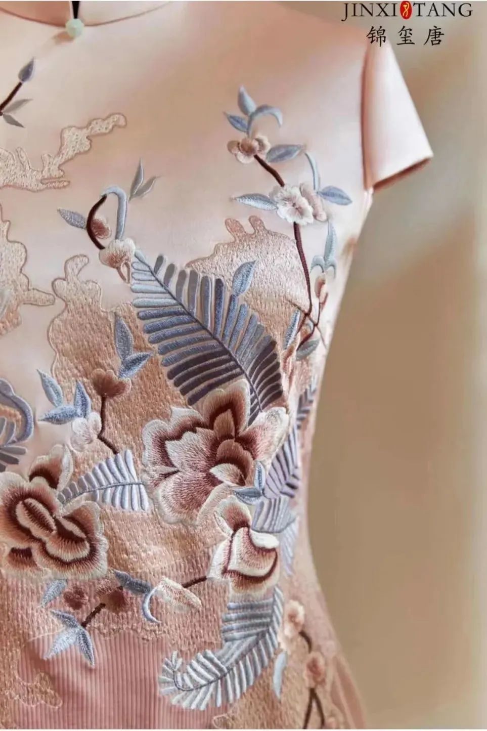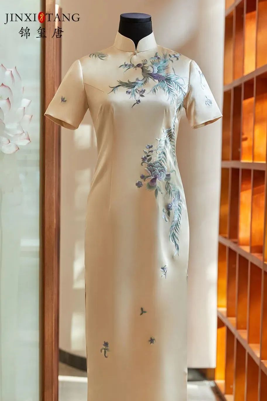苏绣既是旗袍的外形加持,背后蕴含的更是厚重的中华历史和深刻的文化内涵。锦玺唐从中华传统文化中汲取养分,传承中华传统工艺,让一针一线美千年的苏绣艺术回归现代时尚。