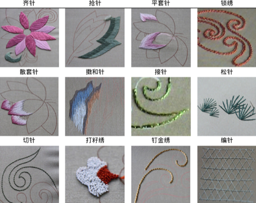 在刺绣的技艺上,苏绣的针法极其丰富,归纳起来共有9大类43种针法之多。