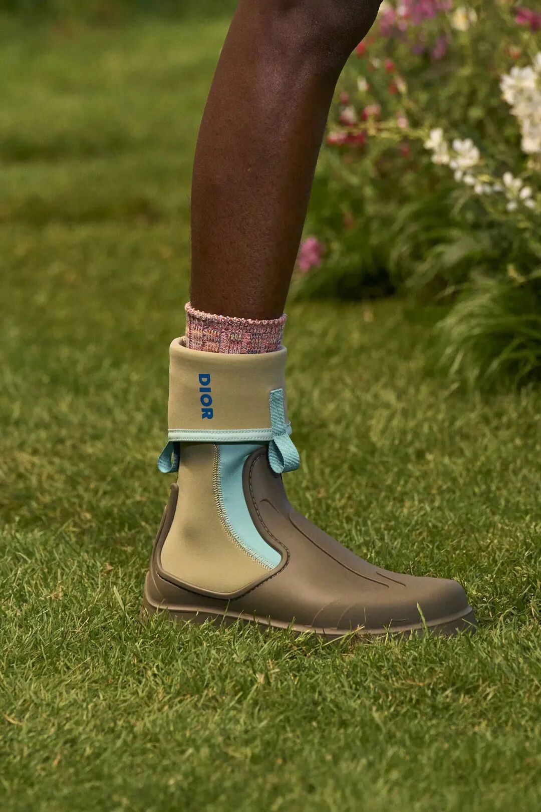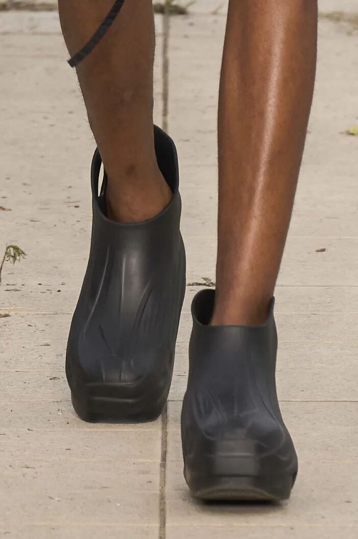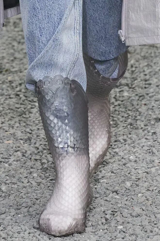 可参考法国品牌Dior,在设计中融入混合材质等实用元素。该款式也是打造极繁户外造型和音乐节造型的重要单品,可通过明亮配色、个性细节、方形鞋头或厚底结构,为设计增添时尚质感。可持续开发问题是模塑结构的关键,应投资更为环保的材料。
