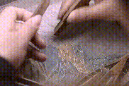 缂丝制作一般有16道工序,所用彩色纬纬丝多达6000种颜色。但色彩变换极其繁琐,每一个过渡色都都要不停地变换小色梭,绘画中一笔可以得得到的变化,在丝中就要分解成无数色块。
