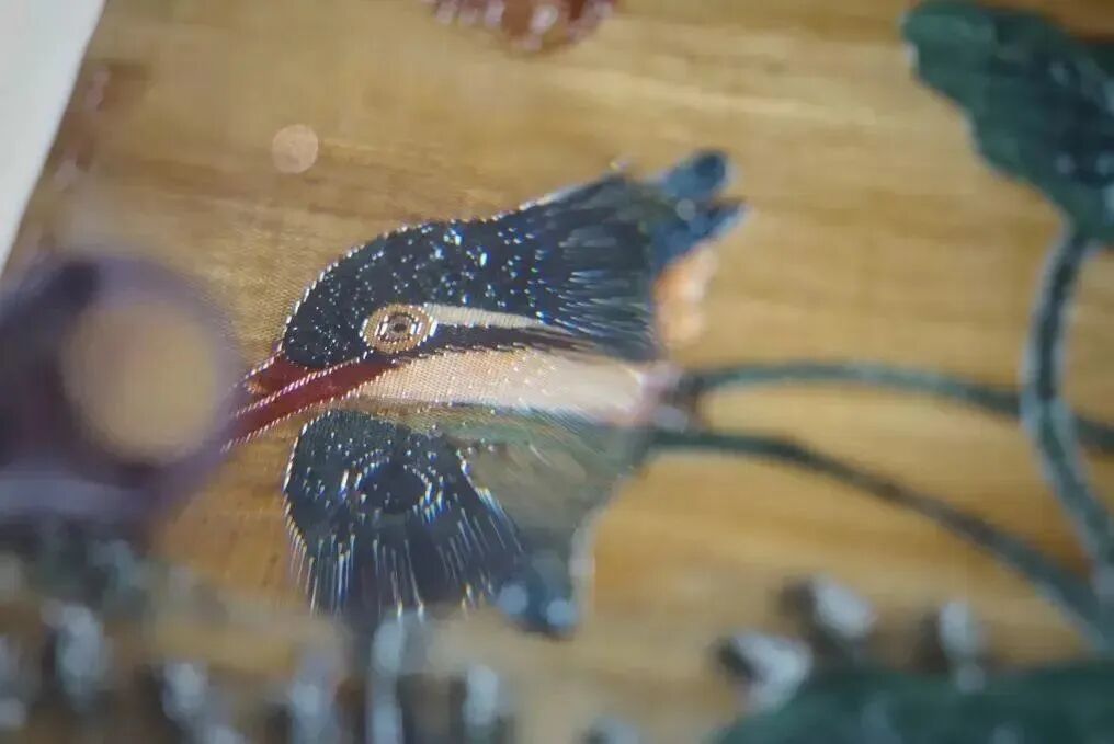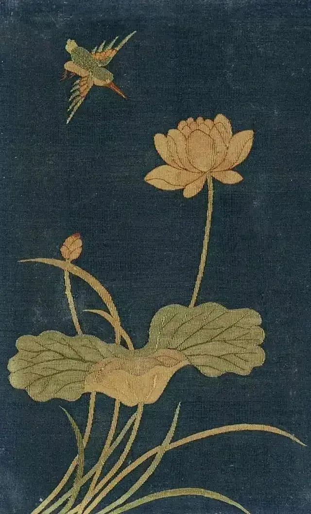 放大镜下的缂丝《翠羽秋荷》细节
