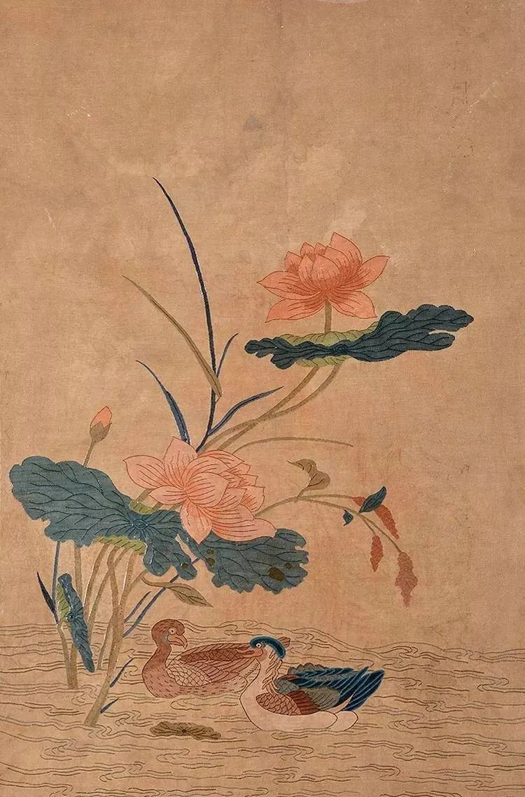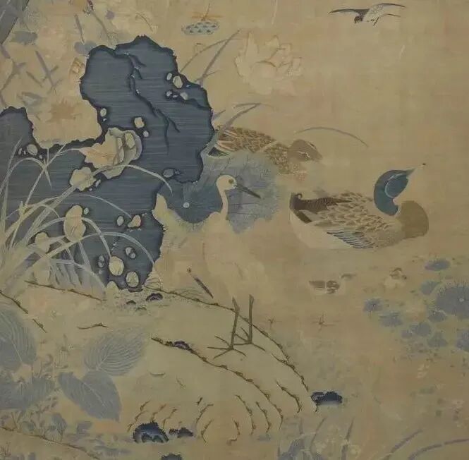 南宋朱克柔 《缂丝莲塘乳鸭图》