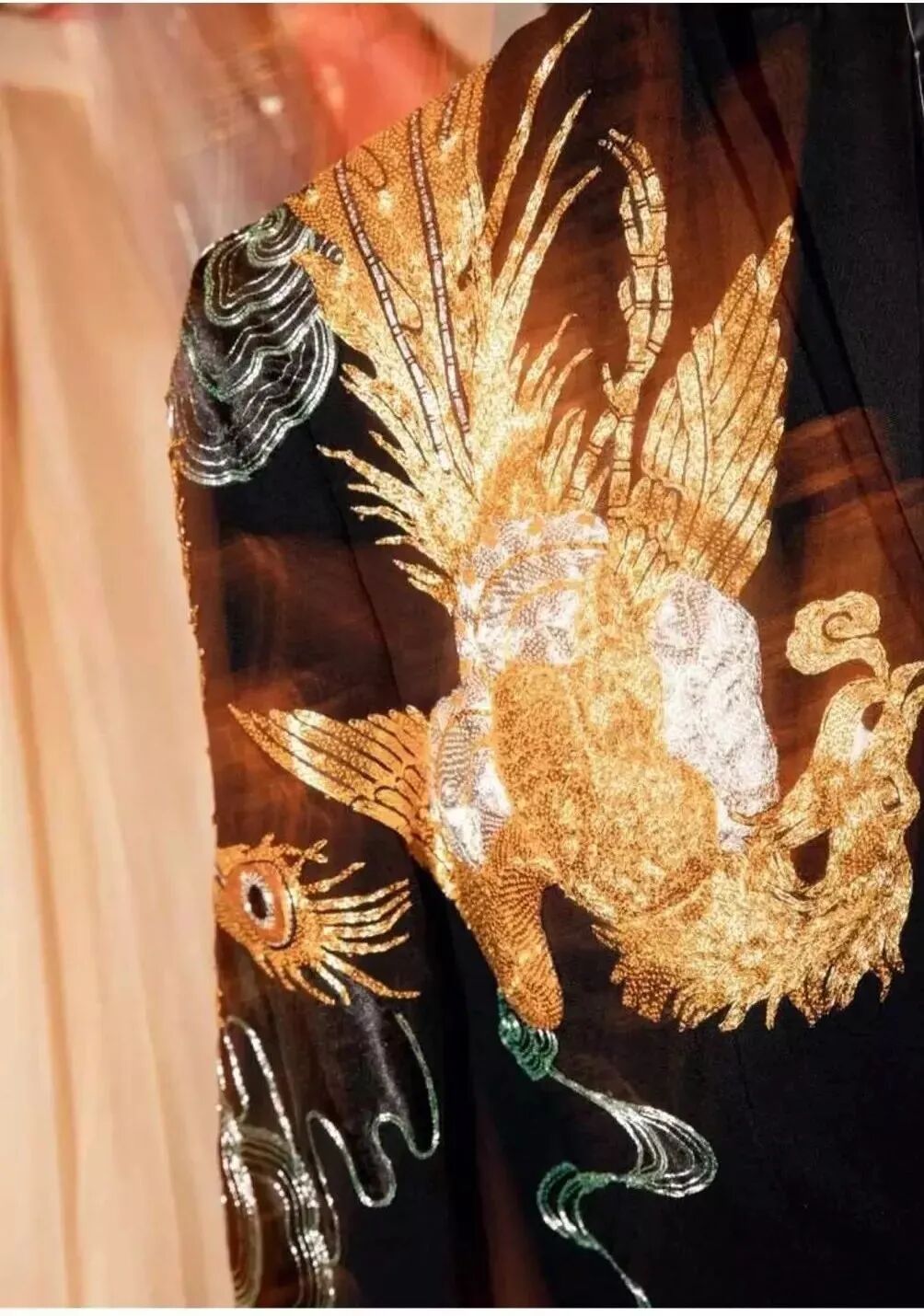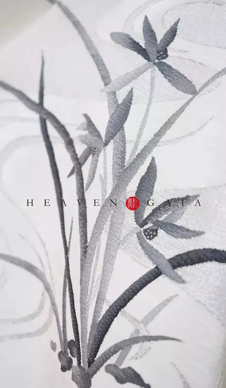 为了让衣服飘逸灵动,盖娅选择了最为高级的缂丝,在这样薄如蝉翼的面料上缝制难度加倍。