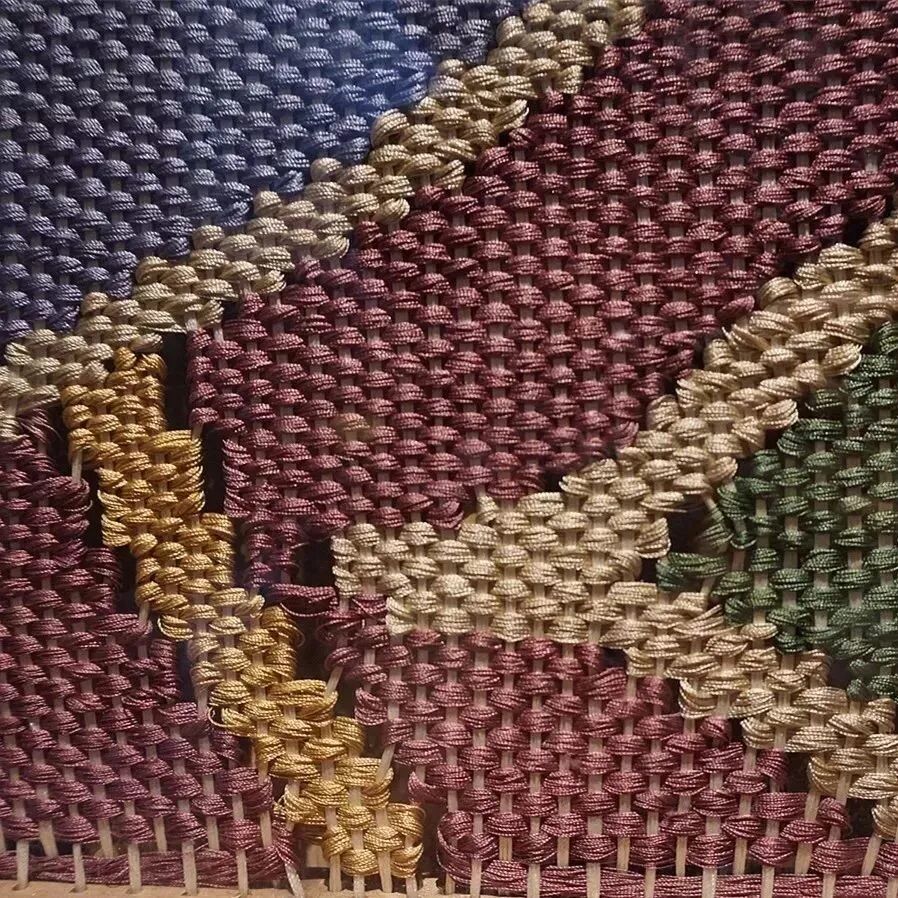 一根纬线不必穿过所有经线,即“通经断纬”,因此同一纬度下,色彩更多样,特别适宜制作书画作品。