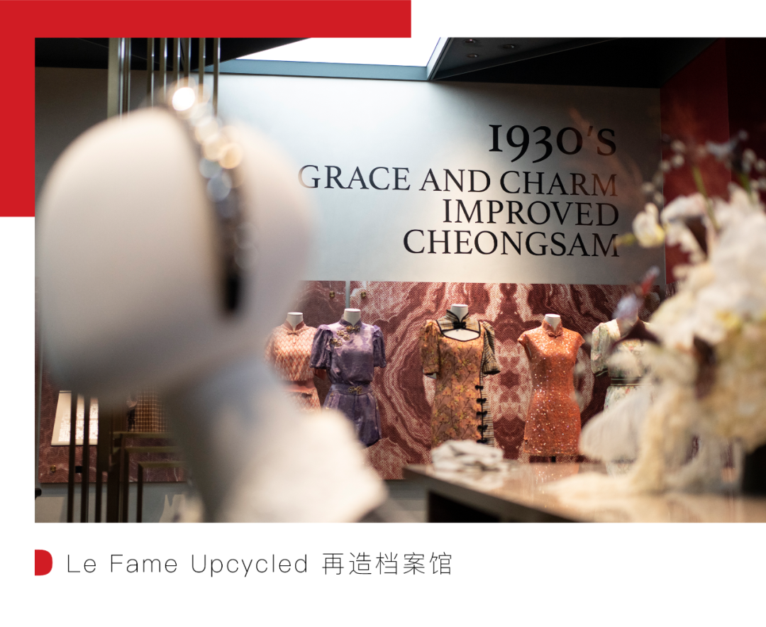 不仅如此,不论是文化共鸣还是商业可能性,“可持续时尚”从未被“环保”这一角度所局限。对于新一代中国设计师而言更是如此。11 月份,Le Fame 推出了「Le Fame Upcycled 再造档案馆」项目,通过将品牌创始至今的海派华服重新梳理,纳入档案,重新定义海派摩登美学。从古灵精怪的懵懂少女,到浪漫优雅的摩登女性,再到坚毅柔情的大女人,「Le Fame Upcycled 再造档案馆」描绘的往日时尚百货公司中,展示了近代中国时尚、中国女性的成长史,也描绘了品牌的成长史。由此不难得知,过去与当代、甚至于未来,并不存在相悖关系,不论对于成熟设计师、还是年轻设计师而言,均是如此。从 1910 年代的“中国时装”诞生、1930 年代的新旗袍装束,到 1940 年代多元混搭、中西合璧的浪漫廓形,「Le Fame Upcycled 再造档案馆」在展示品牌对于“中国文化”理解的同时,也深入地探讨着“中国时尚”的当代性与现代性,将中国传统文化融入品牌的价值观。Le Fame 联合创始人王漫修曾表示,拥有自己的文化体系,从更多角度理解中国文化极为重要。这样品牌才能够在拥有自己风格的同时与更多元素进行融合,表达更加现代且未来化的中国时装。青花瓷器、水墨书法、藏羌织绣、蓝染扎缬……厚重的中华历史所带来的不仅仅是哲学思考与气韵传承,也为新一代的中国设计师们带来了更多创作灵感。这些富有勇气的创意者们探访少数民族聚落,将传承千年的文化与手工艺融入创作;深度挖掘文化背景,在宏大的历史叙事中加入自己的个性表达。他们用更加直观的方式向世界讲述五千年中华历史的深厚传承。前不久刚刚结束的 2022 巴黎名媛舞会(Le Bal des Débutantes),谷爱凌穿着中国高定设计师郭培 2017 秋冬「高定年代」大秀礼服的消息在社交媒体上刷屏。郭培认为,文化的力量就是中国设计的靠山。作为设计师,要立足于大的中国文化概念去思考和设计。她说:“汉唐时期,服装有一种大气恢宏之美;宋明时期,服装有优雅简约之美。这些都是中国服饰的优良传统,但又不是绝对的,因为文化是生生不息的。”在以更新的观点、更有趣的表达形式继承、延续中国传统文化的同时,也有更多的中国设计师从传统工艺中获取灵感,让传承千年的古老工艺获得了关注与赞叹。他们通过创新方式实现了当代传承,以此为古老技艺注入新的生命,呈现那些被时代渐渐遗忘在身后的传统和价值。自 2020 春夏系列开始,先锋服装设计师品牌 Feng Chen Wang 创始人王逢陈便将中国濒危的传统手工印染面料——蓝印花布面料纳入设计语言,并采用了最初的手工方式制作这种特别的面料。这种手工艺可以追溯至一千年前。王逢陈向掌握珍贵技艺的手艺人与中医药师研讨纯粹中式的天然染料,并将其糅合于设计之中。以植物药材中提取天然色素替代化学染料为服装染色,在呈现独具未来感的设计美学之时,也展现了时装环保与可持续的理念。今年 9 月,新锐设计师品牌 Yehuafan 在 2023 春夏上海时装周上,举办了品牌首场大秀。Yehuafan 由设计师范烨骅创立于 2018 年。水袖、充满垂坠感的拼接纱面料,以及服装流畅飘逸感所描摹出的曼妙女性身体,使得低调的范烨骅常常被误认为是一位女性设计师。对于女性美感和精致手工艺的追求让“香云纱”成为了 Yehuafan 作品中常常出现的面料。作为世界纺织品中唯一用纯植物染料染色的丝绸面料,香云纱这种传承千年的中国手工艺材料,在为 Yehuafan 的作品增添了更多的生动性的同时,也让更多 Z 世代消费者了解了这种拥有古老历史的材料的魅力所在。