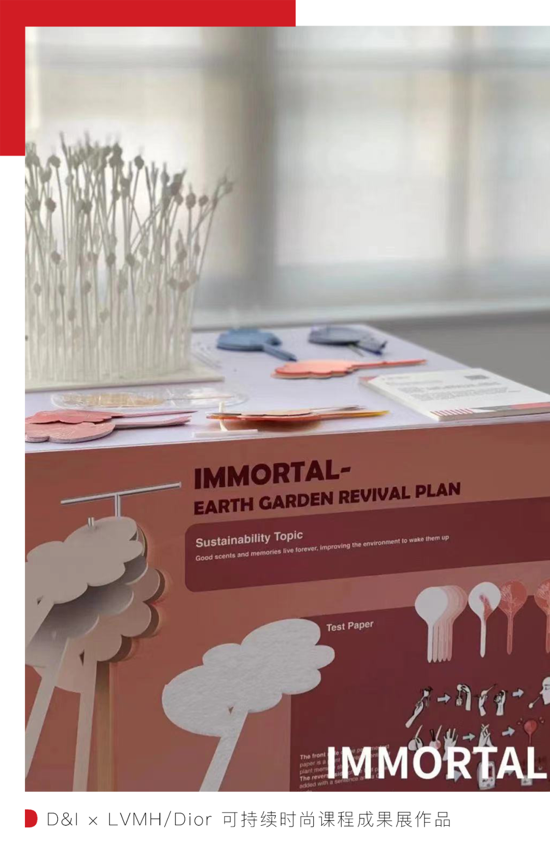 值得注意的是,除了那些不断获得国际影响力的成熟设计师外,作为新生代设计师摇篮的中国时尚设计院校,则早已意识到教育在可持续理念与创新方面的重要性,并通过不断积极改革,为年轻在校生提供相关的可持续实践机会。今年 9 月举办的首届世界设计之都大会(WDCC)开幕式大会上,“东华大学-WWF 可持续时尚中心”项目正式发布。这一项目由东华大学与国际自然基金会(WWF)合作共建,希望以跨学科、跨行业、跨领域的系统合作创新,开辟上海时尚消费品绿色低碳新赛道,促进时尚产业绿色转型升级,助力上海建设世界一流时尚之都,为推动全球时尚产业可持续发展贡献智慧与力量。除此之外,依托其独特的成长经历和文化背景,这些来自各大院校的中国时尚创意力量、及其极具差异化的可持续创意,更在过去一段时间不断得到国际品牌或集团的重视。东华大学便曾与 Theory、Coach 等品牌开设了可持续相关的合作项目,为有志于实现可持续时尚设计的年轻学生们提供更多与市场和产业零距离沟通的机会。今年 10 月,D&I × LVMH/Dior 可持续时尚课程成果展正式开幕。同济大学与 LVMH/Dior 品牌联合可持续时尚工作坊通过技术创新、服务洞察、创意想象的多元碰撞,探讨奢侈品及行业可持续的繁荣前景。这一次的循环再生设计工作坊课程正式开启于今年 3 月,同济大学设计创意学院与 LVMH 集团再度合作,希望能够更好地提高时尚设计的可持续性。本次课程负责导师赵世笺表示:“在两个月的时间里,学生们参观了 Dior 品牌的高定工坊及办公空间,遵循 5R(Reduce、Reevaluate、Reuse、Recycle、Rescue)原则,从传统服务模式升级、可持续材料使用、包装系统提升,以及可持续办公环境四大议题出发,将理论知识与实践相融合,找出最优解决方案。”同济大学长聘特聘教授,博士生导师孙捷则表示,无论是从材料还是到工艺流程,它不仅是一个概念与主题,更是一个系统性的思考与生活方式。它亦为设计和研发团队的创作提供了一个崭新的视角,将可持续发展真正融入到整个设计过程中。也提供了一个全球范围内精确的环境评估,从采购、原材料加工再到门店的销售环节,帮助企业制定更优的商业策略,助力颠覆性的创新研发。