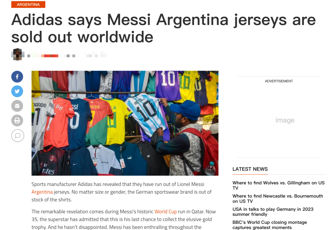 搜索谷歌购物趋势可以看到,关键词“messi”热度一路高涨,在12月多次达到峰值。在亚马逊及速卖通等电商平台上,球服、奖杯、奖牌等赛事产品持续畅销。搜索“世界杯球服”、“世界杯旗帜”等关键词,可以看到阿根廷的关联商品是最受欢迎的热销品之一。但“梅西经济”的爆火绝不是决赛结束后才出现的偶然现象,据记者报道,世界杯开始前,梅西周边产品就已有脱销的迹象,当时仅有价格499的儿童版球衣出售。据悉,国内一家与阿根廷特许产品开放商品牌聚星动力合作的工厂,表示早在年初就收到了上万制作阿根廷球队球衣的订单。由此可见,“梅西经济”的爆火早已埋下伏笔。如今,阿根廷夺冠更是为“梅西经济”再添一把火。现在,在阿根廷球队的品牌赞助商阿迪达斯的天猫旗舰店里,阿根廷主、客场版球衣连儿童版都已断货。在部分球衣专卖淘宝店内,阿根廷主场球员球衣单价高达1200元,比官方售卖价格高出了将近一倍,而印有梅西号码名字、冠军盾世界杯臂章的阿根廷主场球员球衣,单件价格更是高达1800元。在阿迪达斯官方购物APP、得物、淘宝等购物平台上,阿迪达斯在今年11月专程为梅西打造的限定款金色球鞋价格也是一路飞涨,官方销售途径于12月脱销,在其他渠道不同的码数价格也不同,但最低价格都已高达9000元。除此之外,伴随着卡塔尔世界杯的赛事热度,被称为“直男爱马仕”的球星卡,也迎来了交易活跃期。早在今年11月,#球星卡迎来交易活跃期#就曾登上微博热搜,有报道表明,在某跨境电商平台,2022年第一季度,平均2秒就有一张球星卡售出。由于球星的名气、球星卡系列、是否带有球星签名等差别,球星卡在市场上的价值也有着不同的价值。而梅西卡无疑是球星卡中的“钻石卡”了,有媒体报道,过去三个月曾有卖家出售三张梅西卡的价格高达约100万元。“梅西经济”全球爆火,生产、售卖其周边产品成为了跨境卖家们的一大商机,不过版权问题仍是跨境卖家们面前的一座大山。世界杯决赛前夕,“义乌指数预测阿根廷夺冠”消息传遍各大社交平台,还有义乌卖家表示自己收到了阿根廷“三冠”纪念球衣的订单,一则“义乌接到阿根廷三星订单”的视频不仅引发了跨境圈的热议,也引起了足球圈的关注。北京时间12月17日上午,阿根廷国家足球队官方微博就此发出了版权声明:视频中的义乌三星冠军服是侵权产品。众所周知,世界杯周边产品需要获得国际足联的授权,才能具备生产及销售资质。一旦未经授权私自销售,就会因侵权而面临被监管部门抑或是电商平台处罚的风险。对于跨境卖家们而言,在行业竞争激烈的当下,把握商机固然重要,但版权意识也必不可少,必须引起重视,获得IP授权才能合法合规销售相关产品,方能在跨境销售的路上越走越远。来源:中国服饰