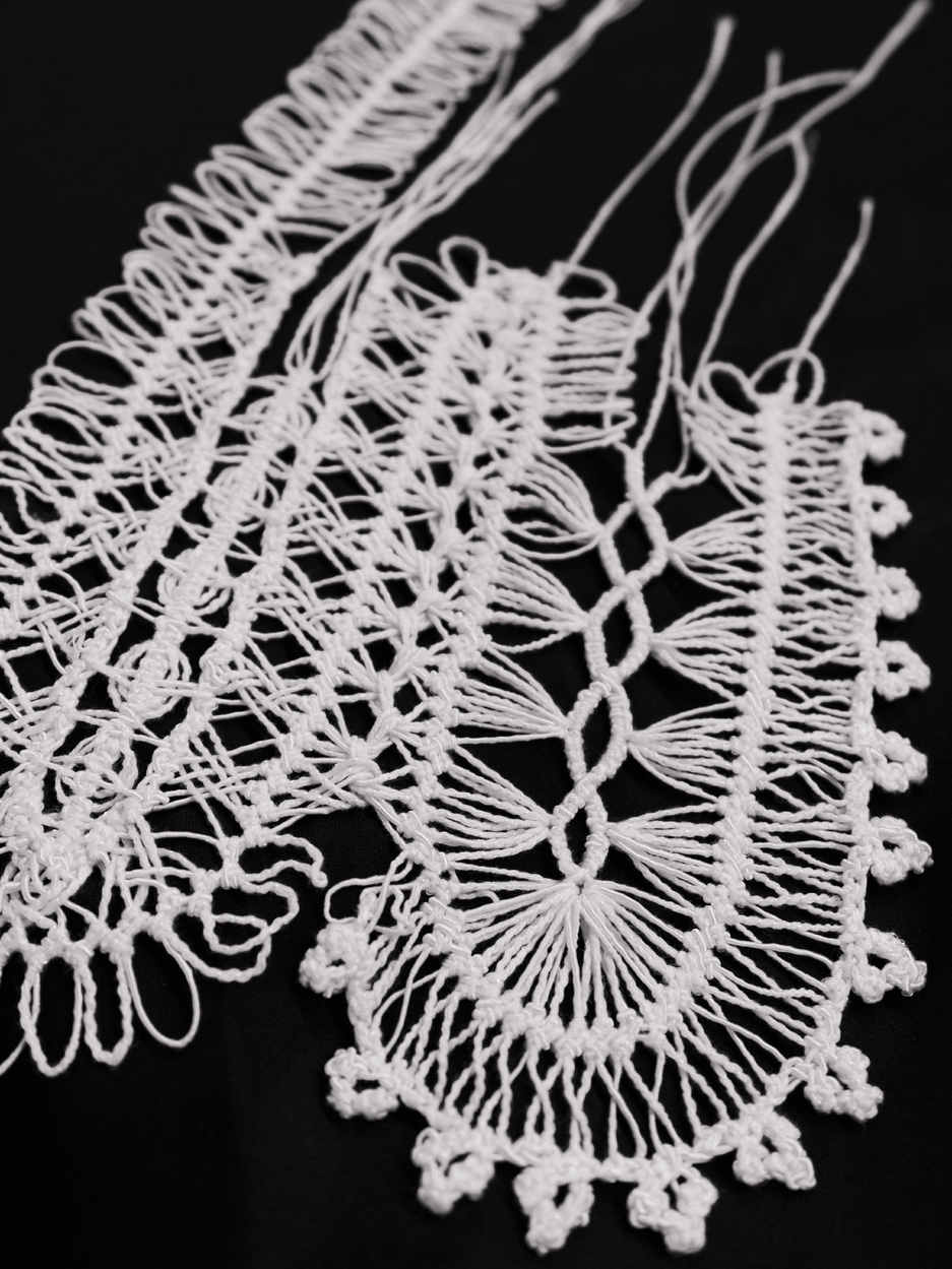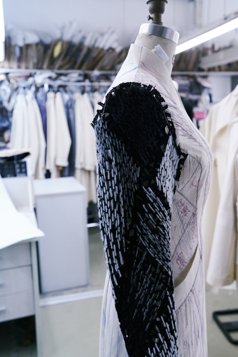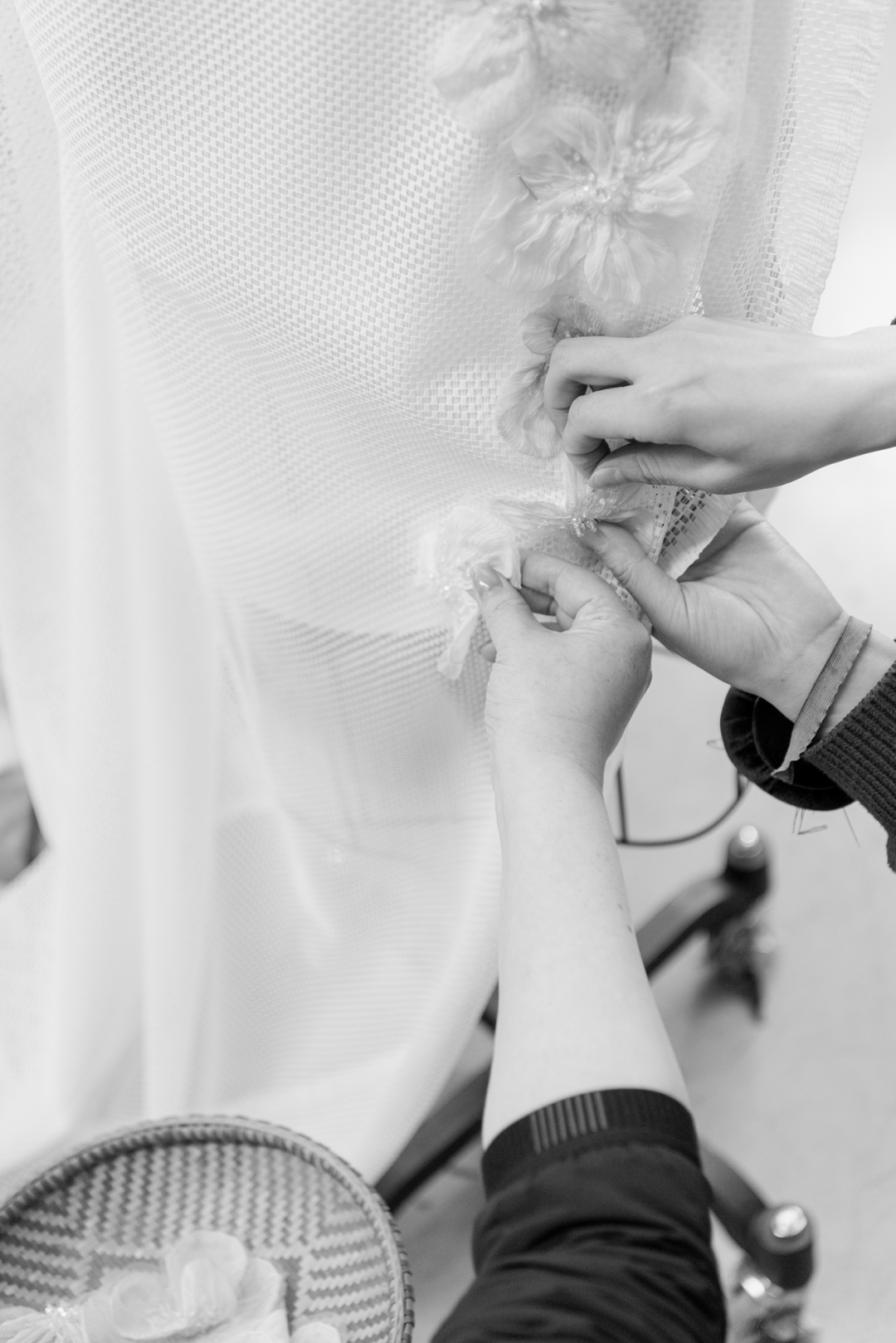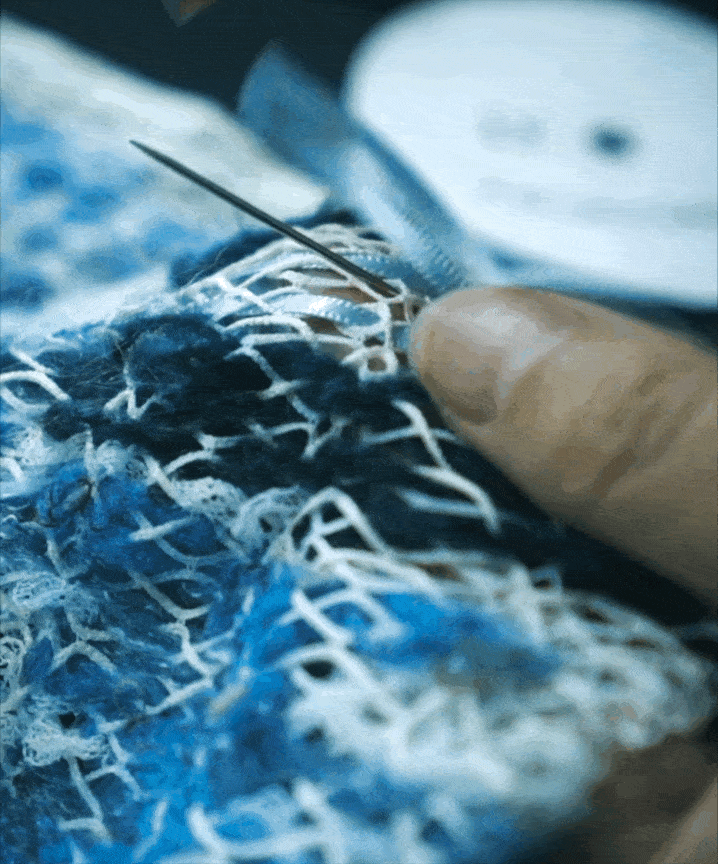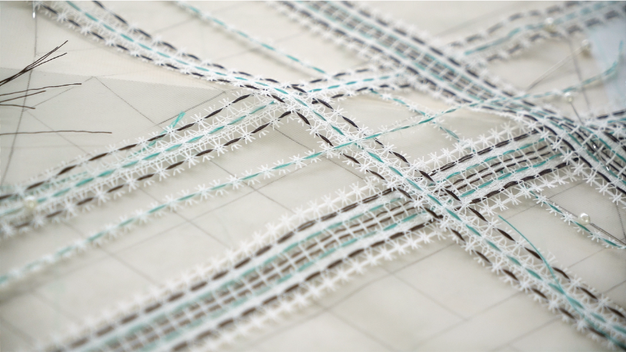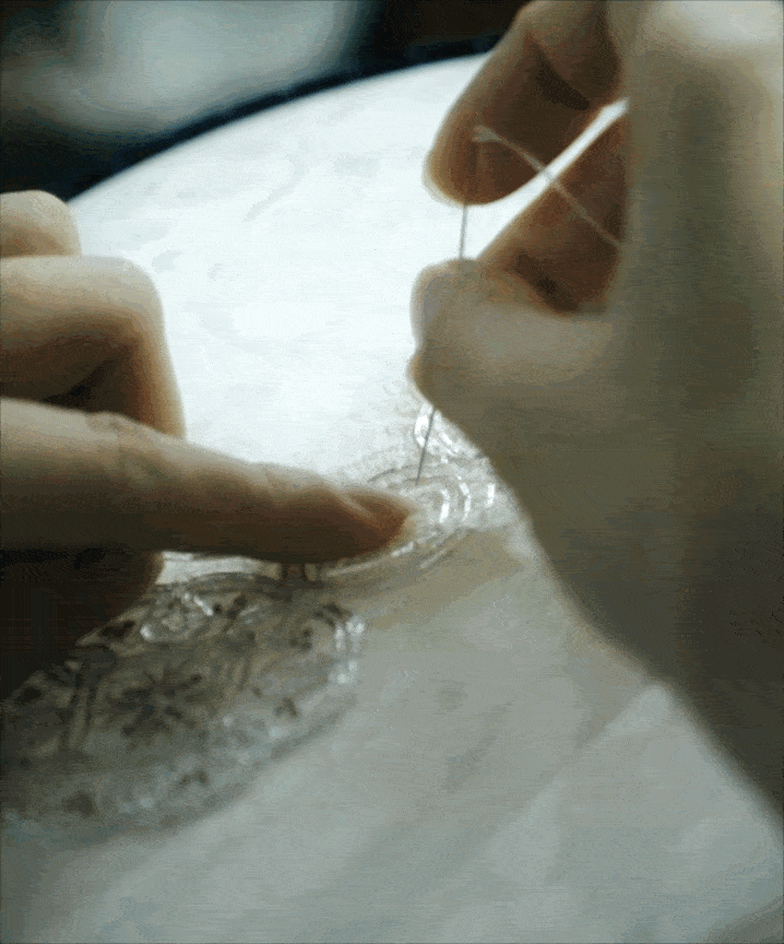 Grace Chen在《书》系列拥有优秀“节奏感”的一个新工艺——手工蕾丝编织。