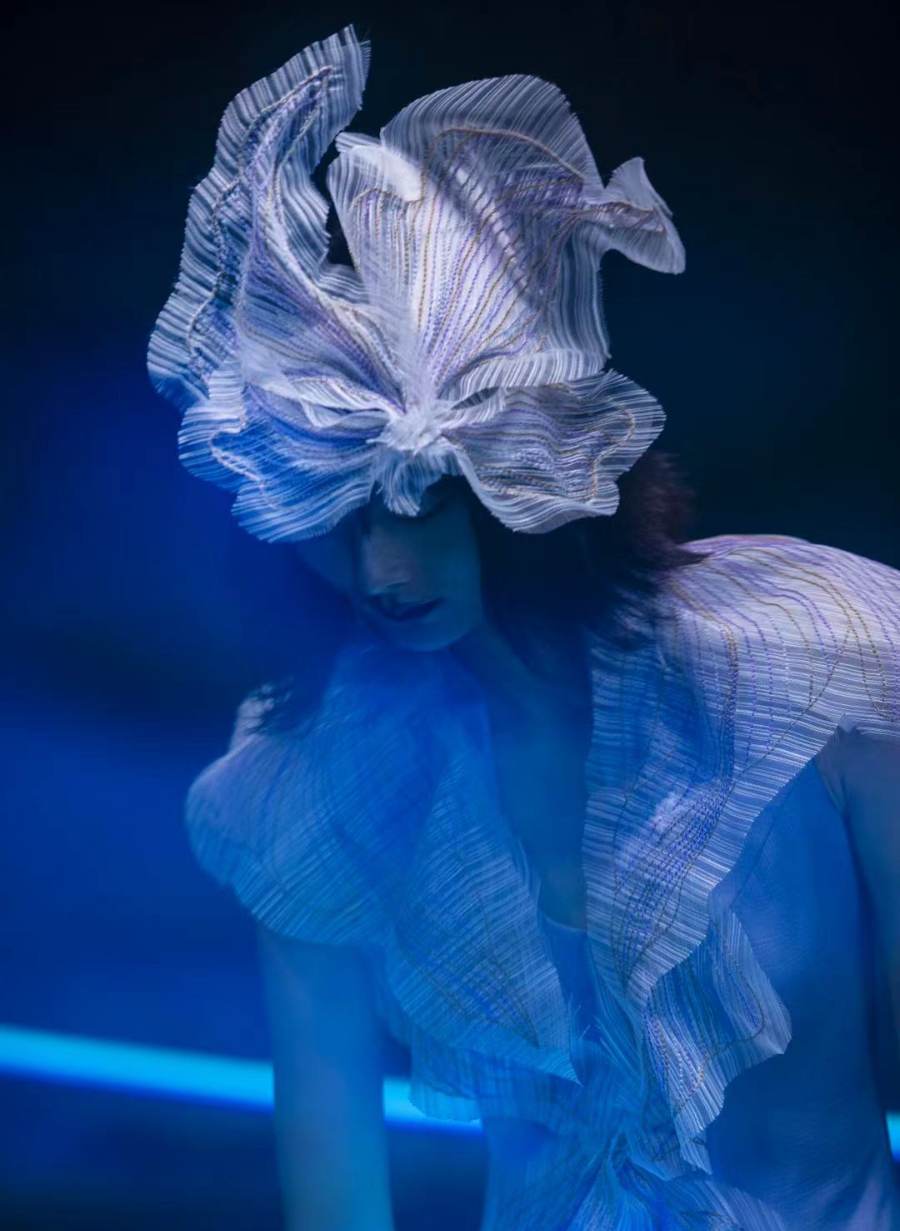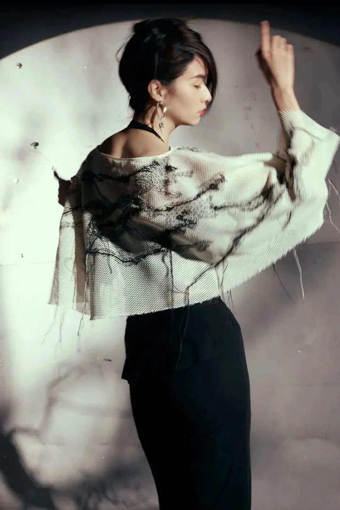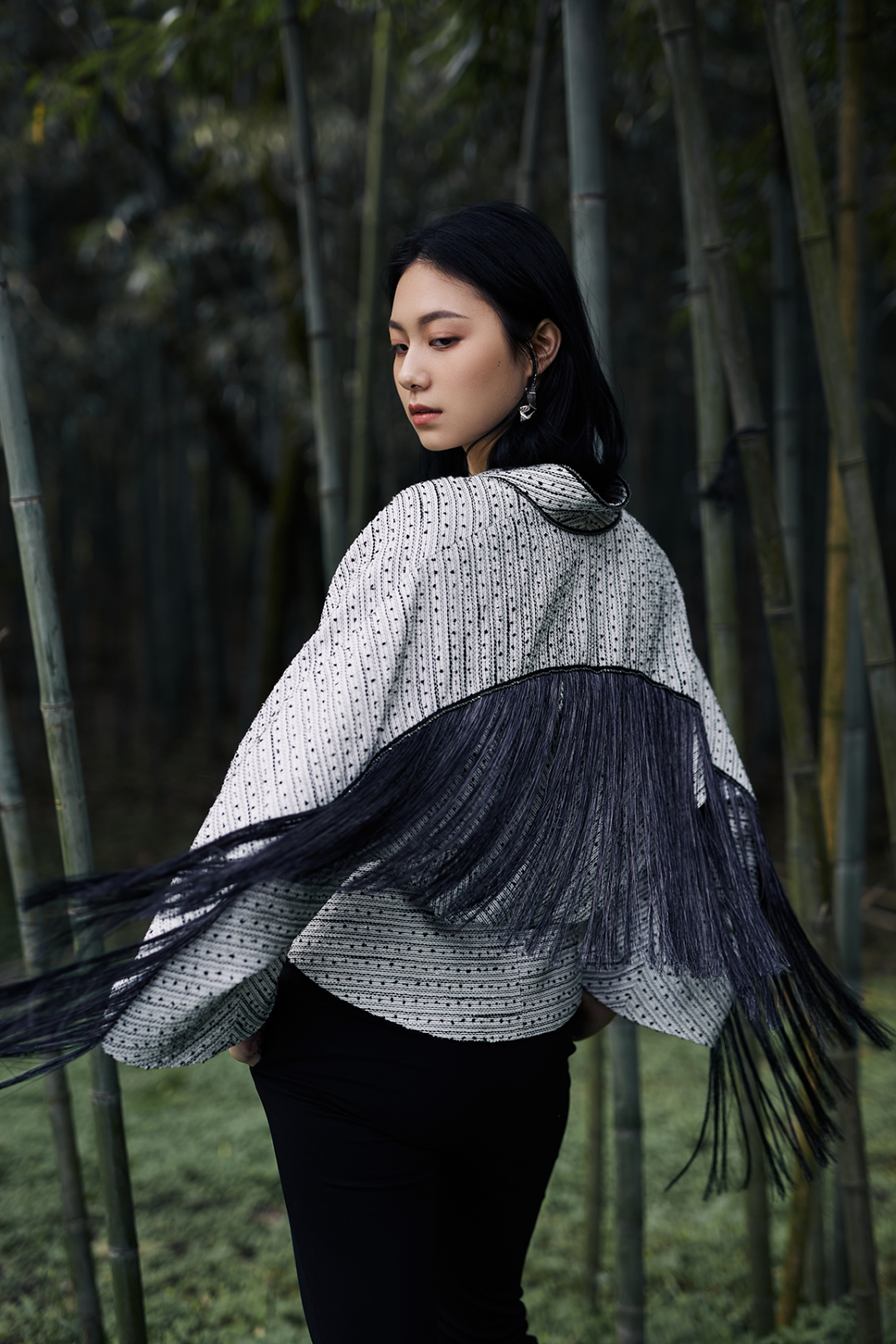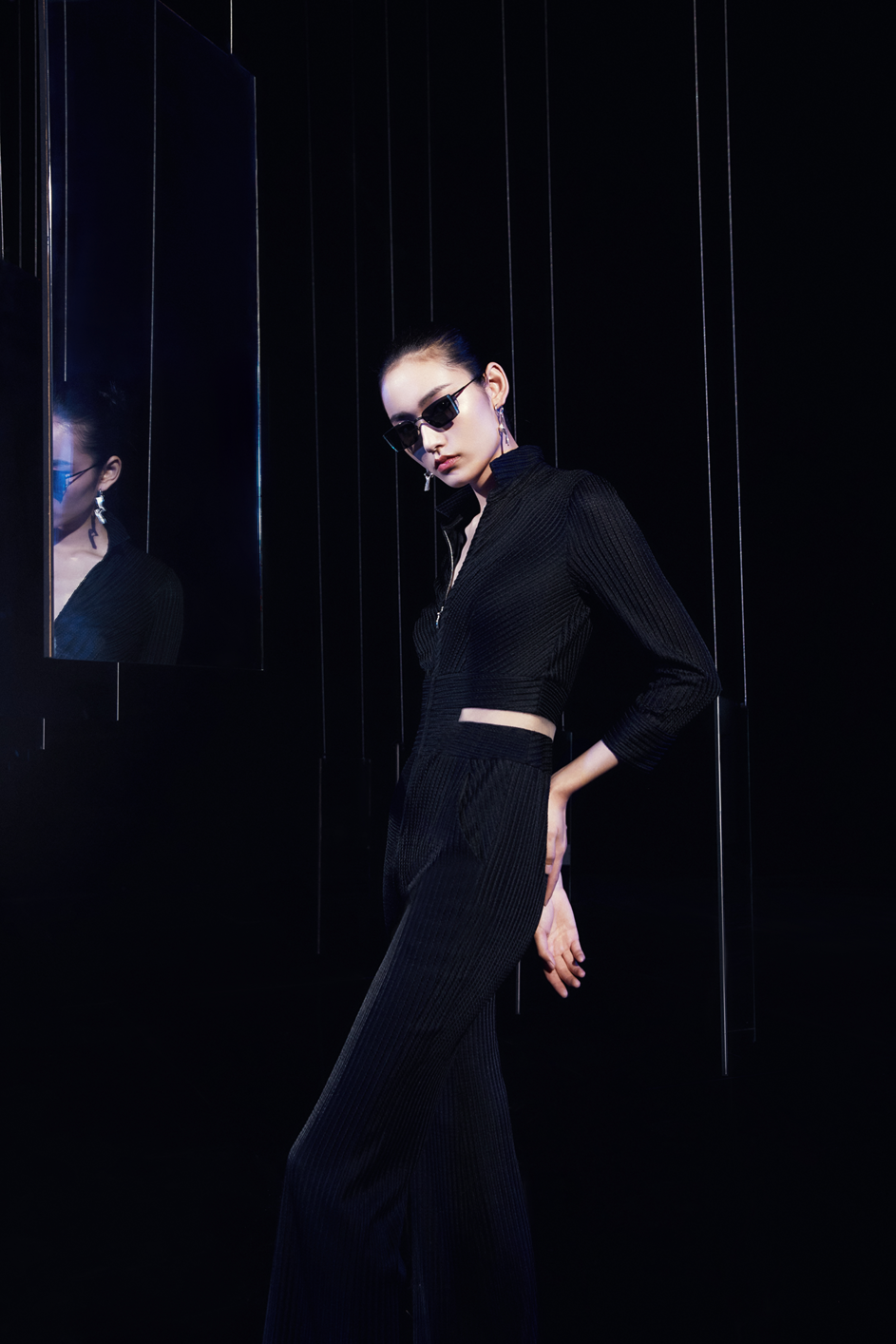 设计师将书法的最本质、最深奥的美学概念以服装的形式呈现——以字“形”的神塑造衣“型”的魂,不见一字,却依然能从服装中感知到节制、展促、流动…的书法之美。