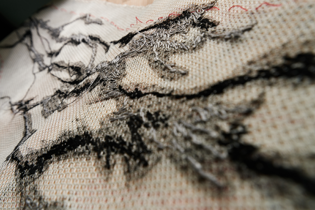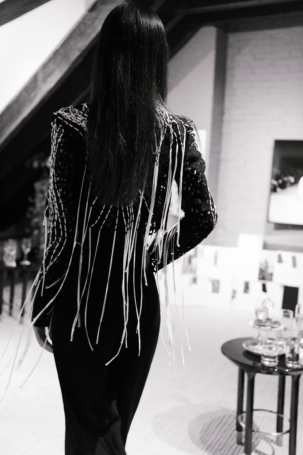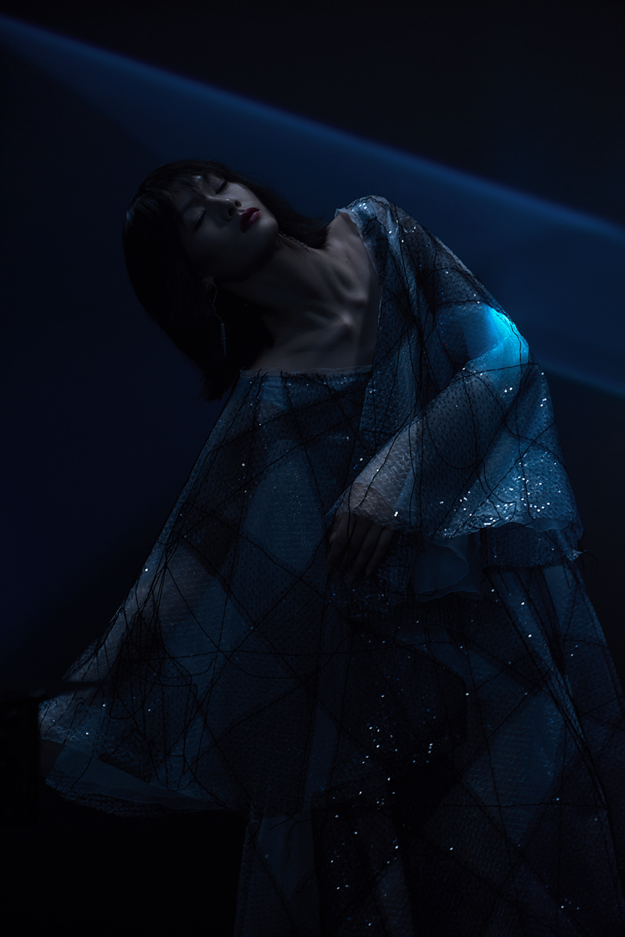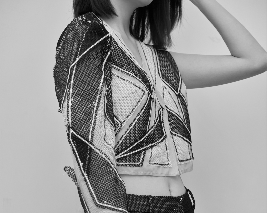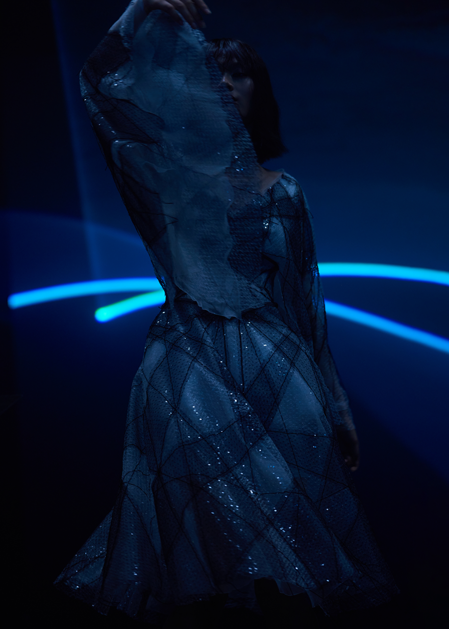 设计师将书法的最本质、最深奥的美学概念以服装的形式呈现——以字“形”的神塑造衣“型”的魂,不见一字,却依然能从服装中感知到节制、展促、流动…的书法之美。