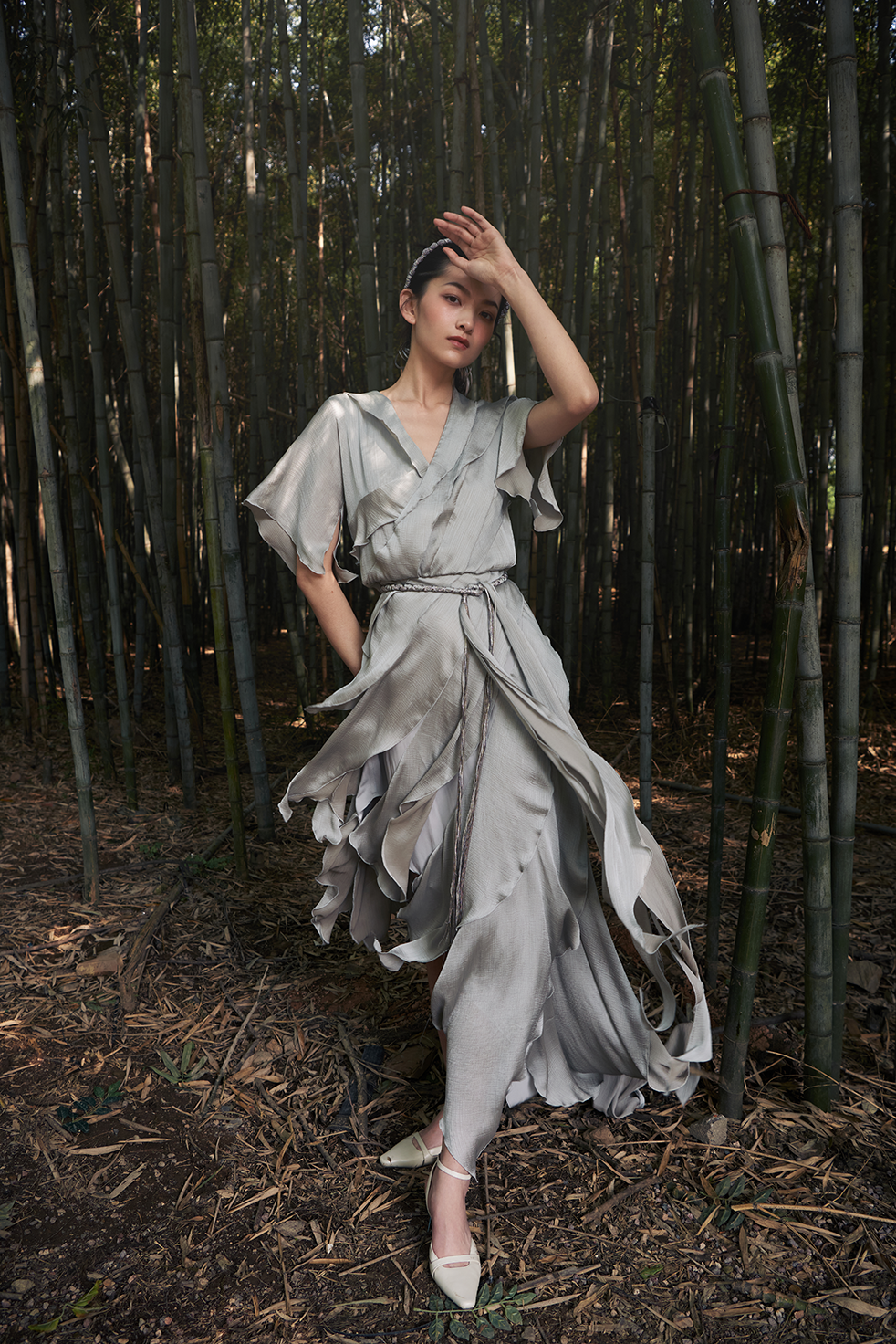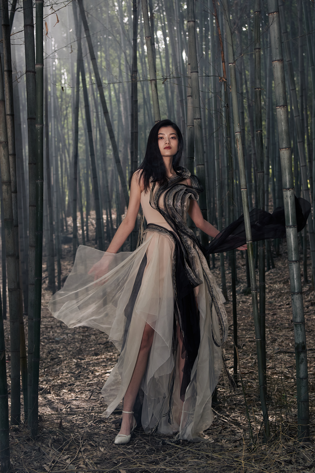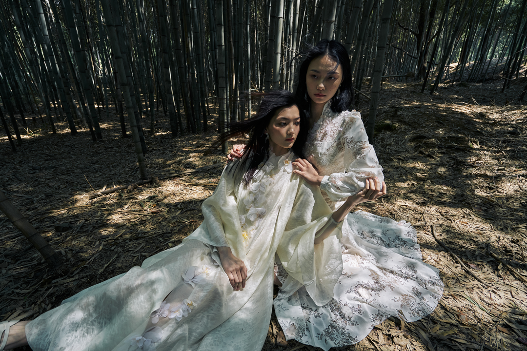 GRACE CHEN 2021SS《琴》系列,来到臣在古人精气神的东阳个木园。在这个充满中国历史文化的栖息地,探寻古人神韵,寻找历史与当代的连接。