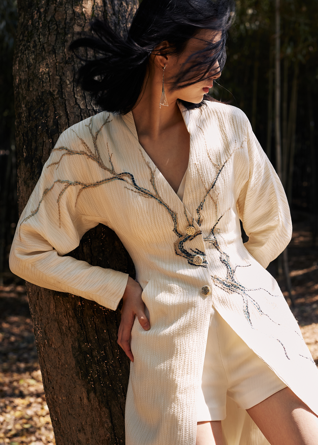 设计师陈野槐毕业于北京服装学院和纽约时装学院,她曾长期在纽约、好莱坞工作、生活,曾担任多家知名礼服品牌设计师及艺术总监,为众多国际明星名流设计红毯礼服,深谙中西文化精髓。