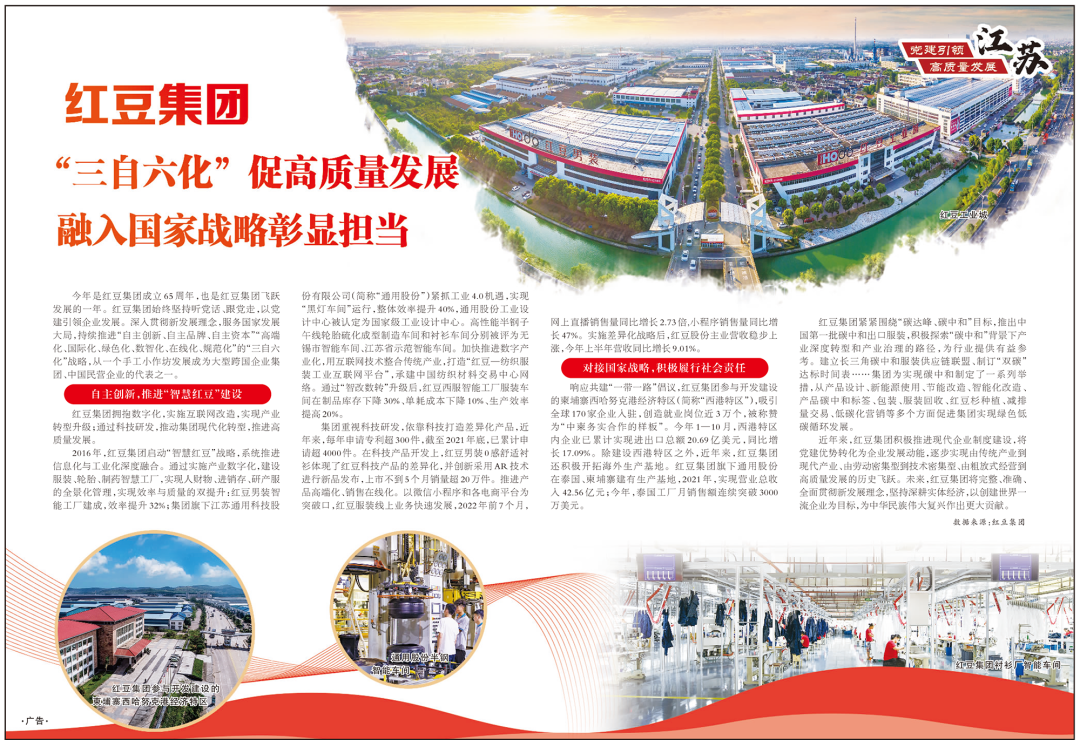 企业动态 | 《人民日报》:红豆集团 “三自六化”促高质量发展,融入国家战略彰显担当