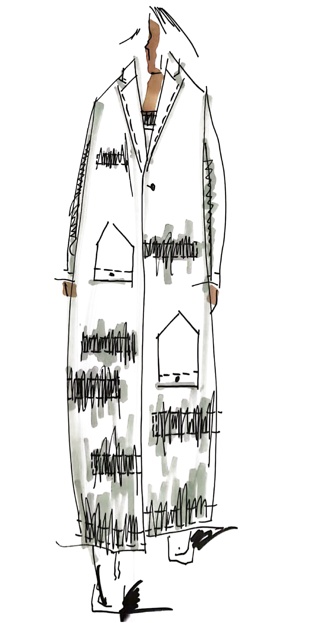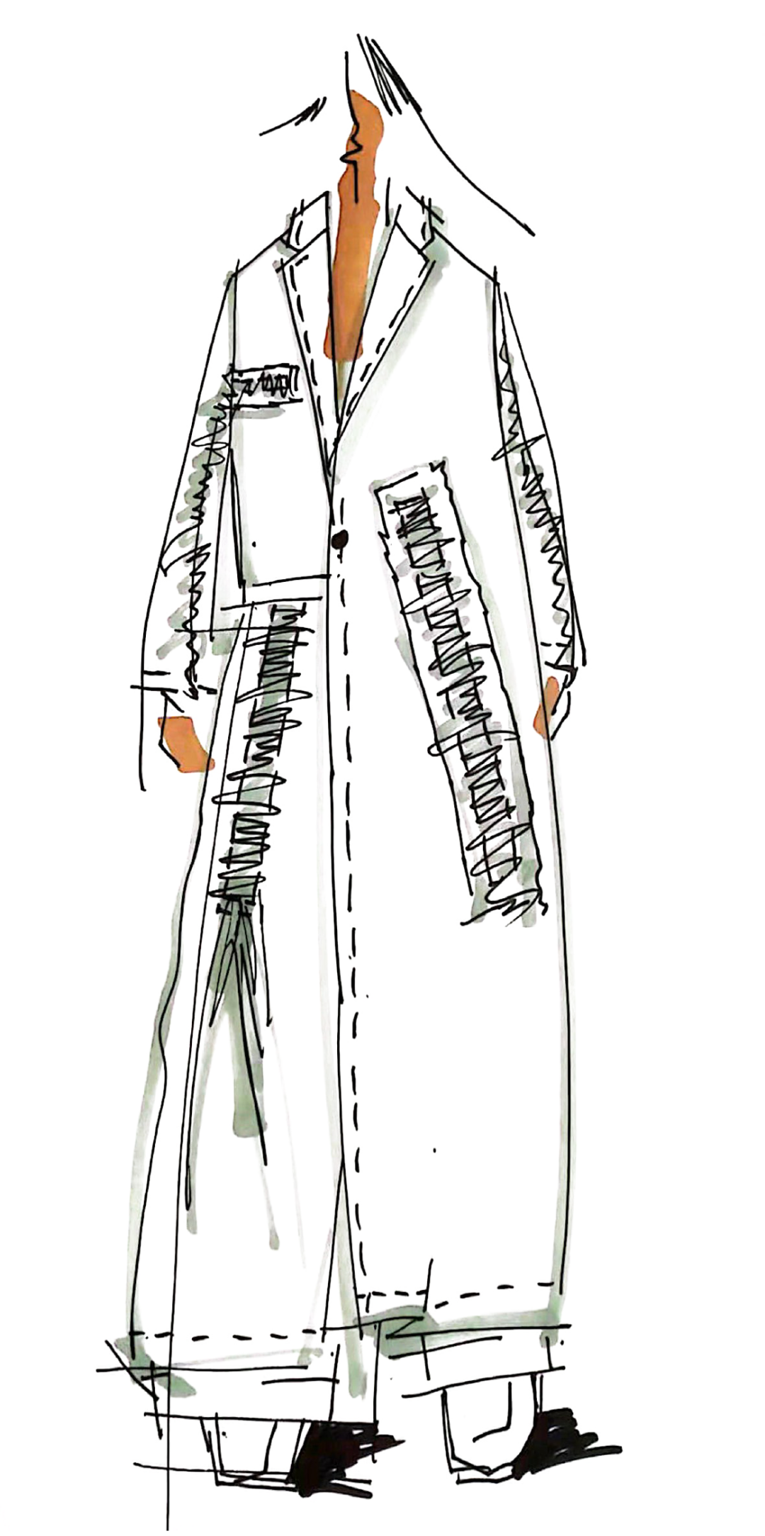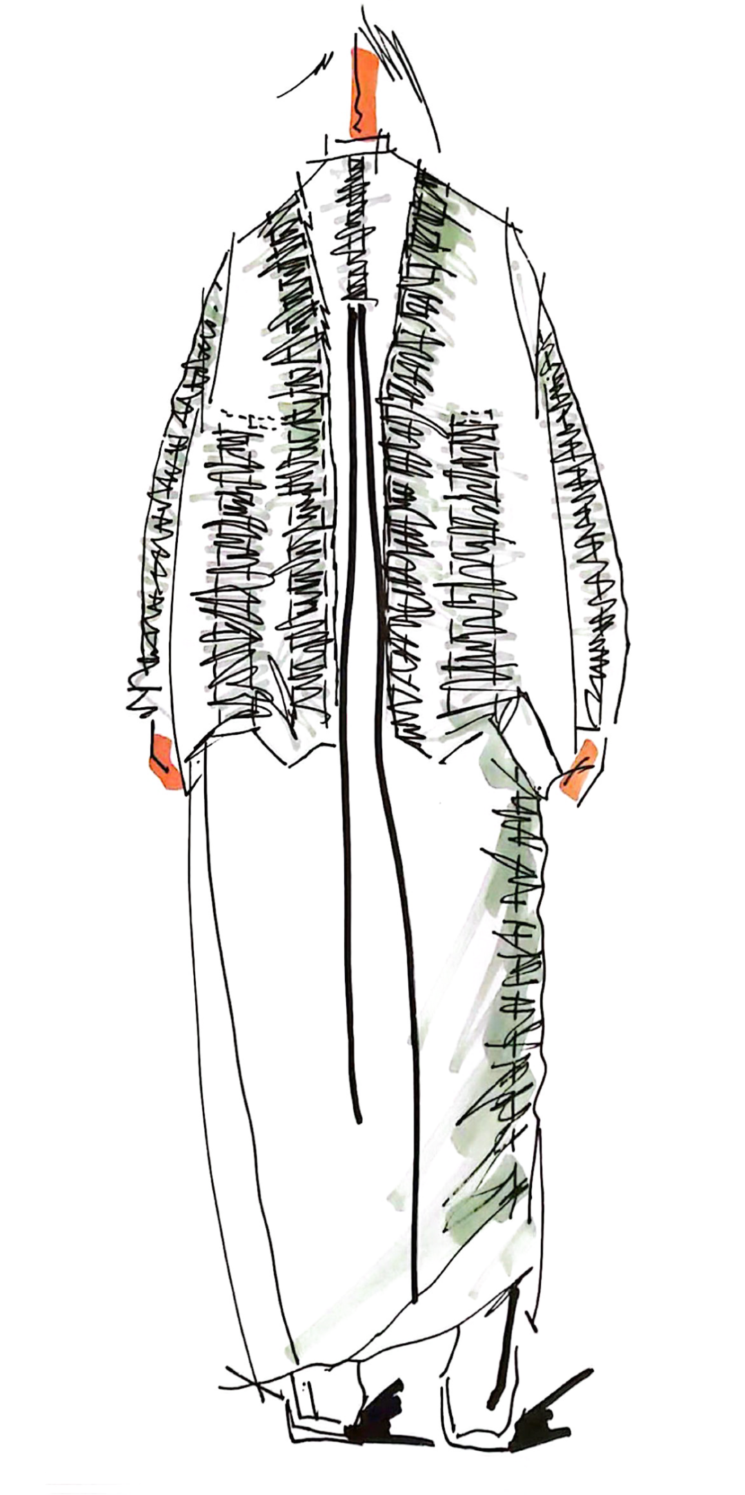 捡子的“不规规矩矩的穿戴方式”完美契合解构风格理念,在设计的美学观念上,捡子将最重要的元素集中到服饰结构上,所有的创新似乎都源于一种嫁接与混合的化学试验。他希望让产品不仅是躯体的覆盖物而是能融入到穿戴者的身形中,更成为穿戴者、身体及设计师三者的交流纽带。