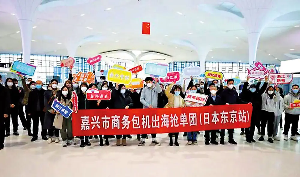 12月4日,由嘉兴市商务局等组织的50家企业单位近百人商务包机团,从杭州萧山国际机场出发,飞赴日本东京参加第36届亚洲纺织成衣展。据了解,包机团里共有参展企业50家96人,成员中大部分是嘉兴的外贸企业负责人,也有来自杭州、宁波、湖州等地的10多位“外贸人”,这是2022年初以来全国市级外贸参展包机团中企业数量最多的一个。