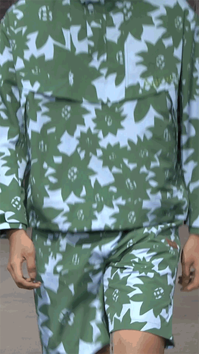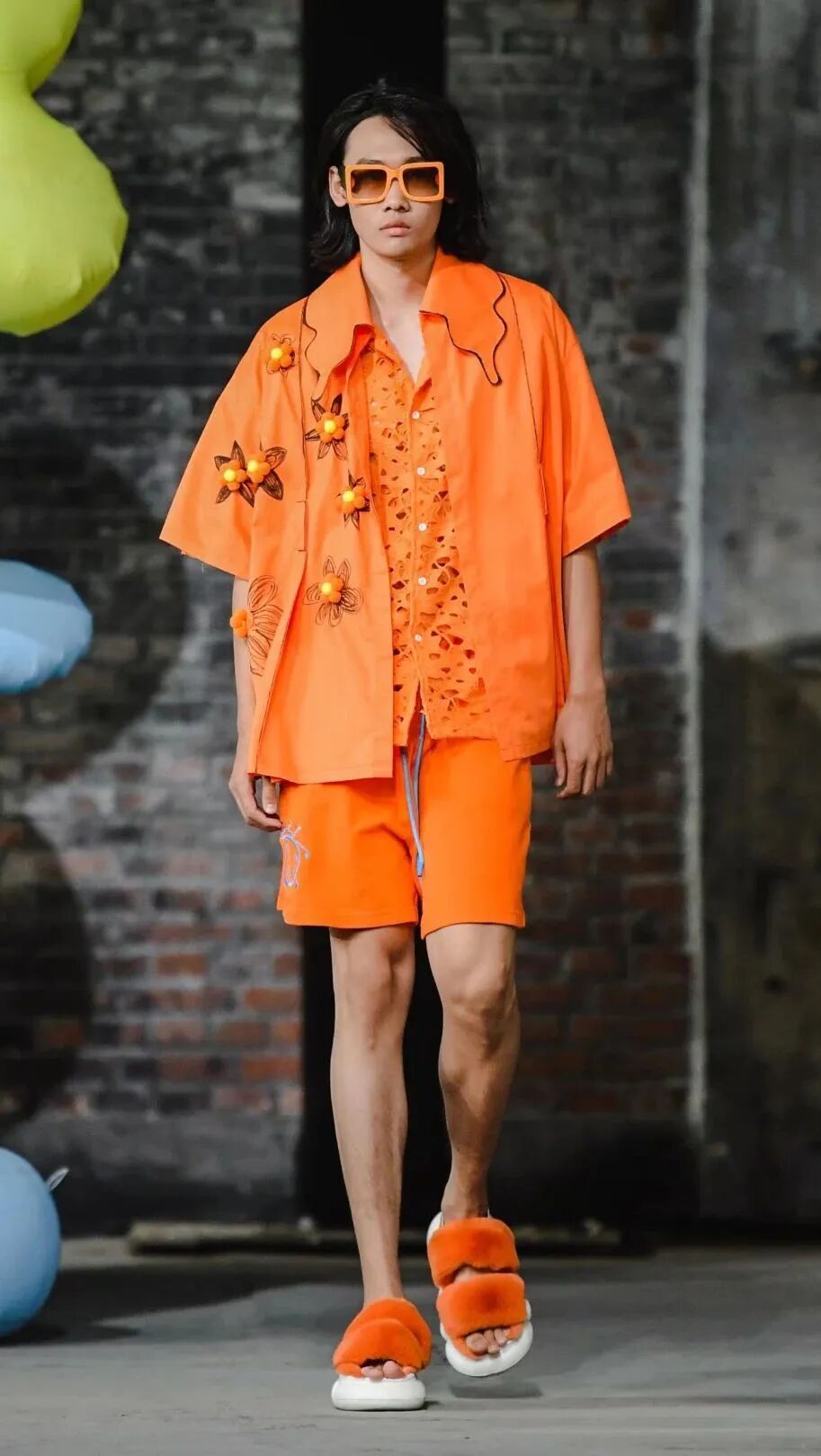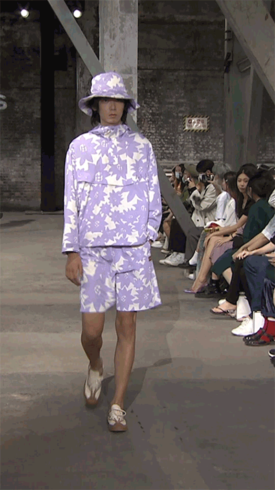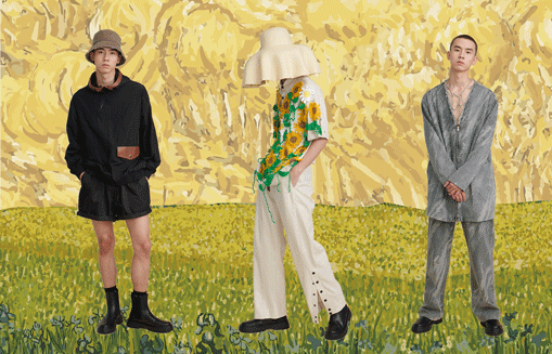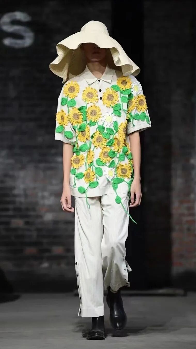 “葵”的主题是创意团队设计理念的具象写实,高纯的黄色基调调和为休闲单品的主色调,拟人化的花盘盛开在经典造型夹克、西服的布面,热烈生长的花瓣3D打印成型做纽扣点亮细节,富有张力的线条穿插在衬衫之间波动协奏……时装创作的生命和梵高这一刻定格在画布同一片太阳下生机勃发。
