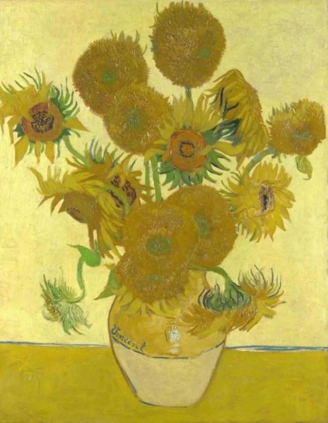 图三:《花瓶里的十五朵向日葵》收藏于英国伦敦国家画廊;