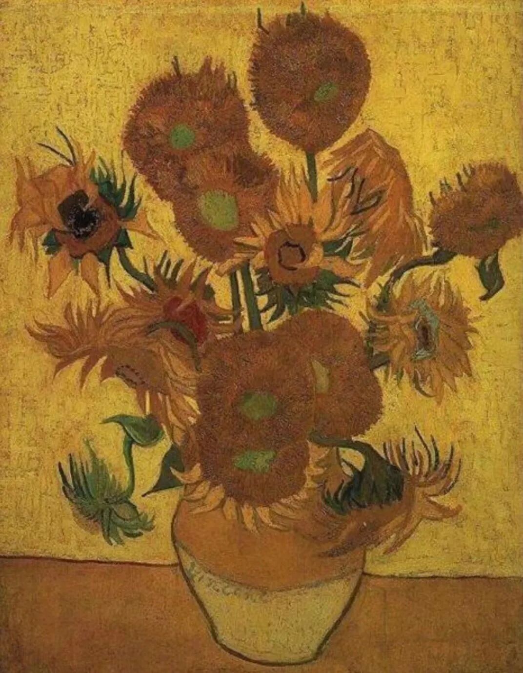 《花瓶里的十二朵向日葵》收藏于美国费城博物馆